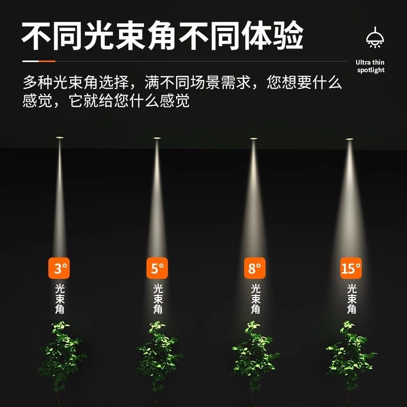 一束嵌入式射灯小角度光束角3度5度8度聚光玄关防眩天花灯开孔