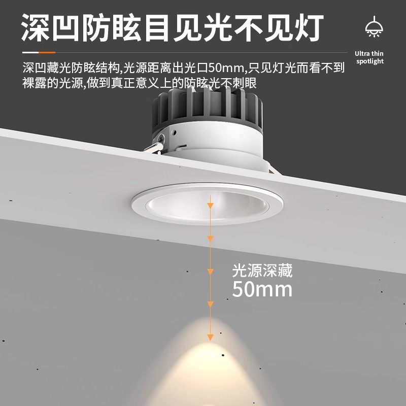 深杯防眩光射灯cob家用客厅嵌入式led灯天花筒灯75mm小山丘洗墙灯