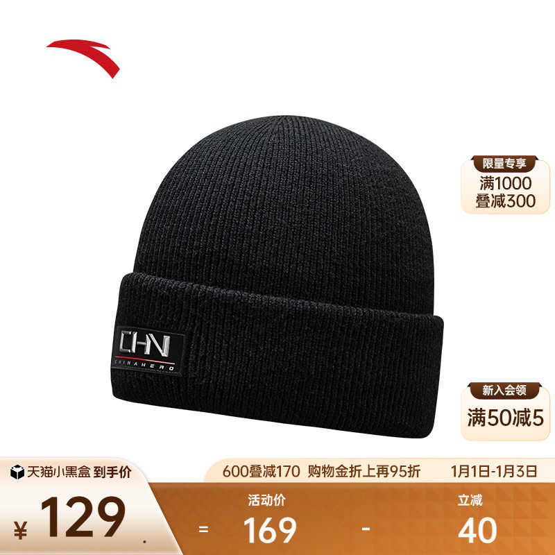 安踏针织帽简约百搭滑雪户外防风保暖舒适耐磨加厚运动毛线抓绒帽