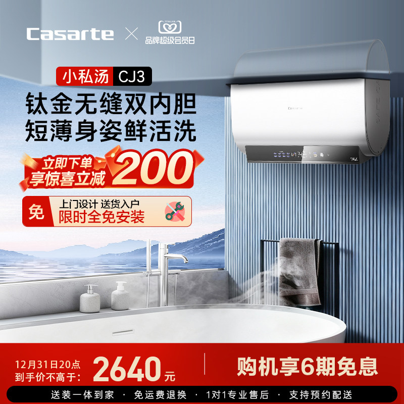 卡萨帝官方电热水器家用卫生间镁棒免换纤薄双胆扁桶速热60升CJ3
