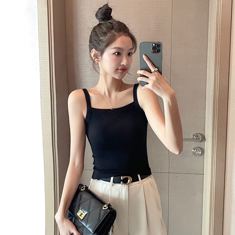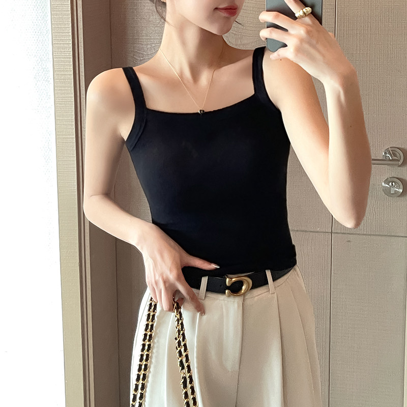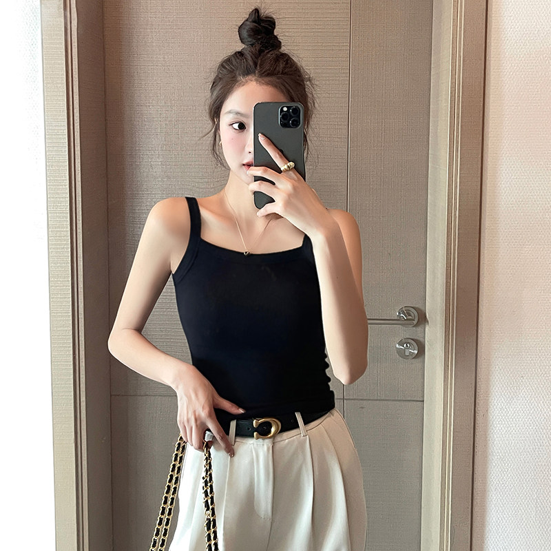 莫代尔吊带背心女夏薄款纯色无袖打底衫修身百搭简约内搭U领上衣
