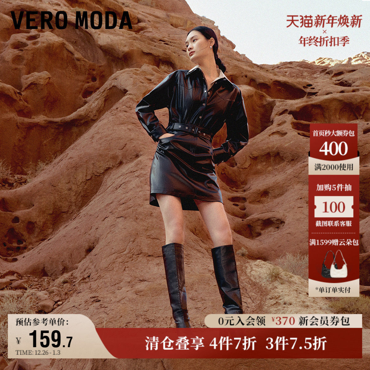 Vero Moda奥莱连衣裙秋季新款PU背心裙辣妹机车收腰皮裙短裙子