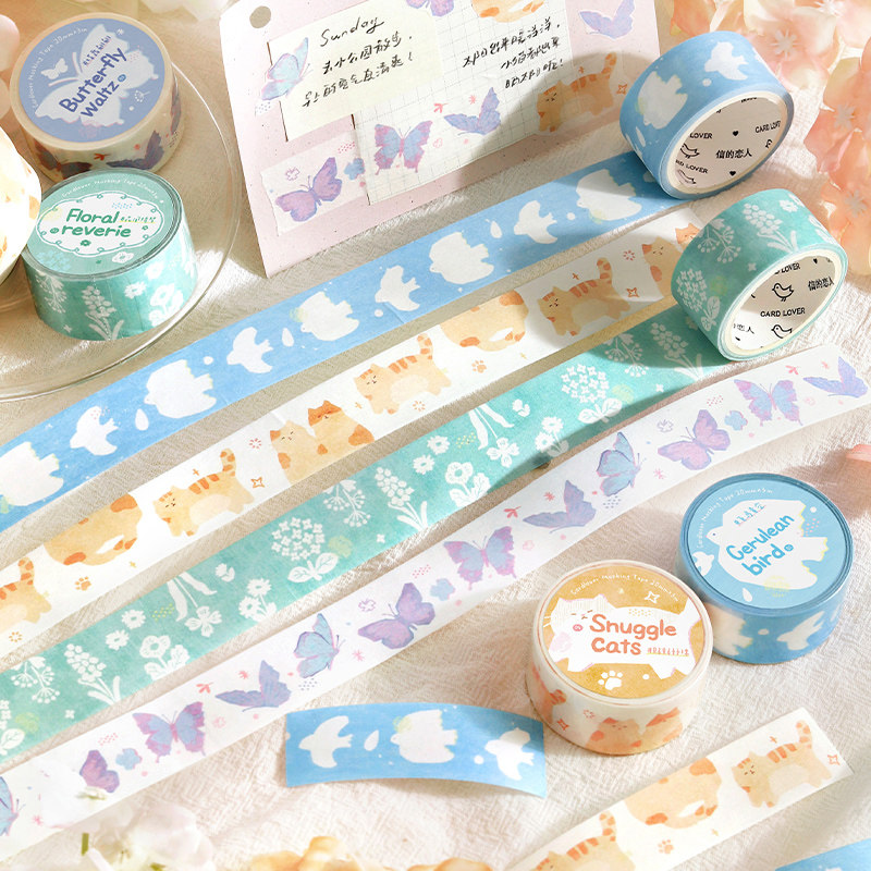 春日叙事曲和纸胶带 猫咪与飞鸟清新文艺手帐diy装饰拼贴素材拉条
