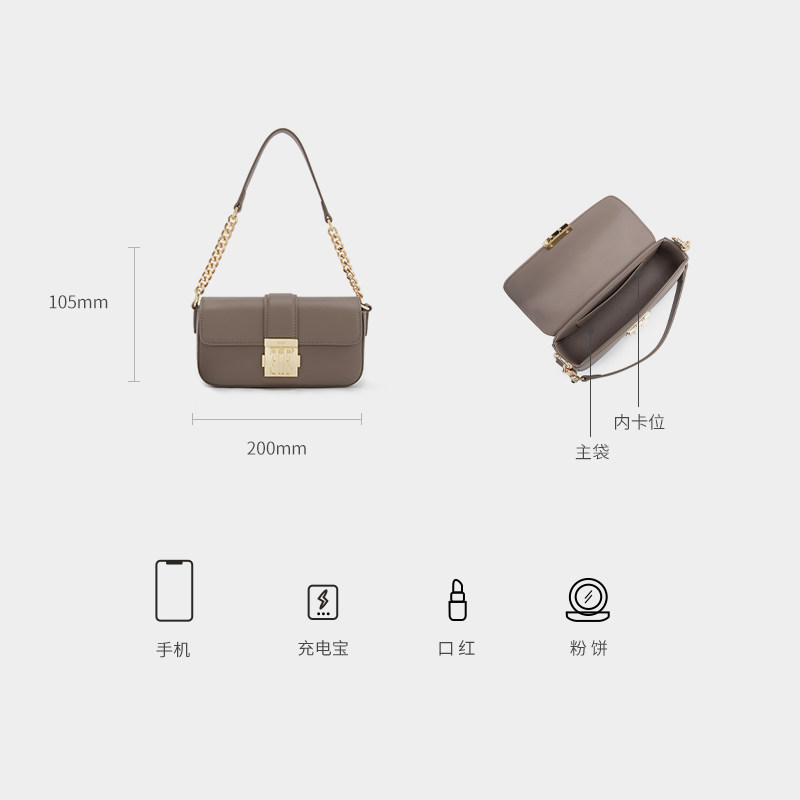 南风Chio2nd 磨砂牛皮栗木奶霜小方包冬季质感通勤链条单肩斜挎包