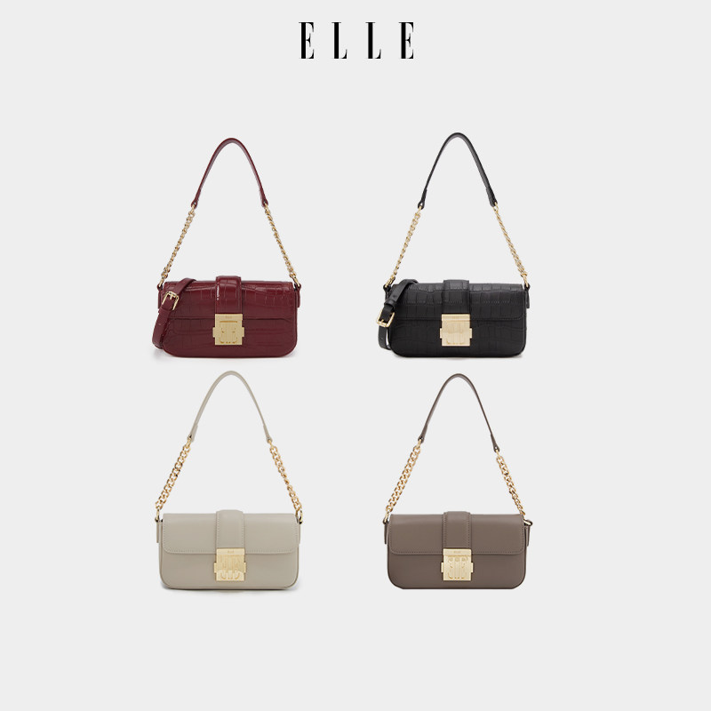 双旦礼物ELLE女包2025新款链条小方包腋下百搭斜挎包女士真皮包包
