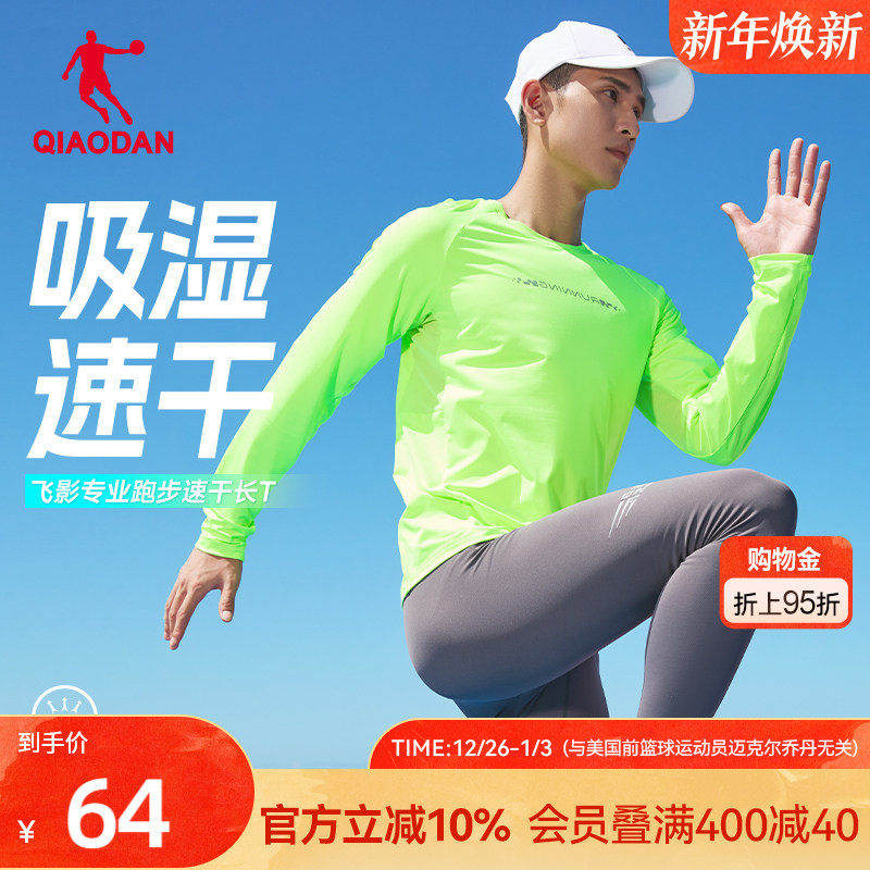 乔丹运动跑步针织长袖T恤衫男生2025秋季新款透气速干衣专业排汗
