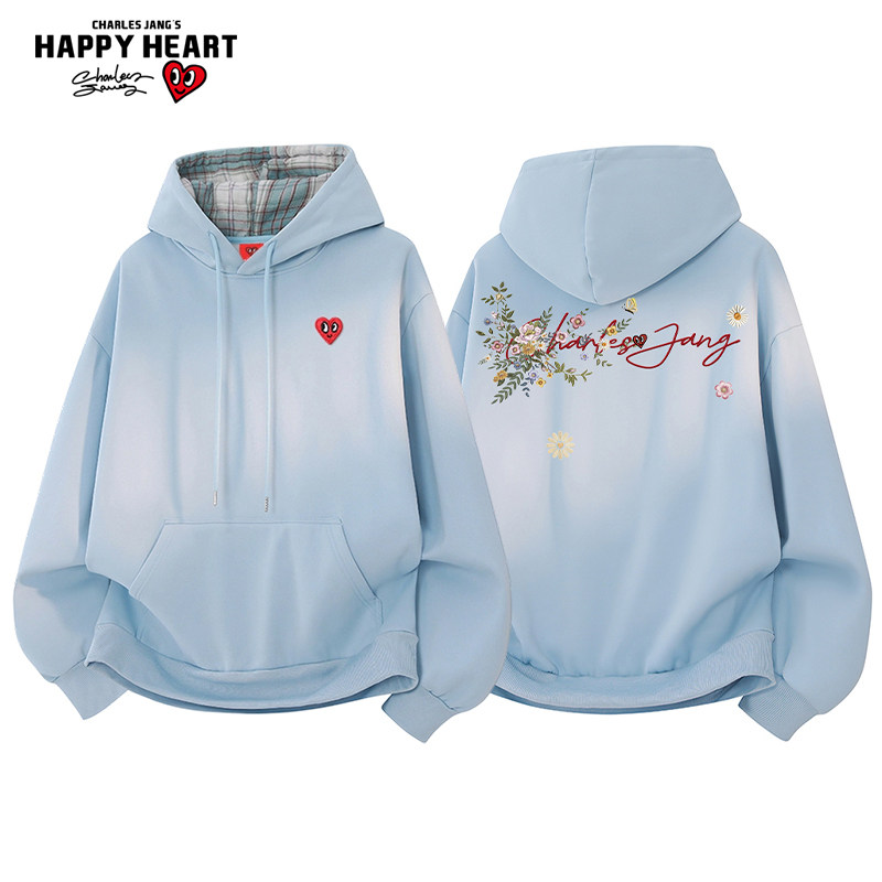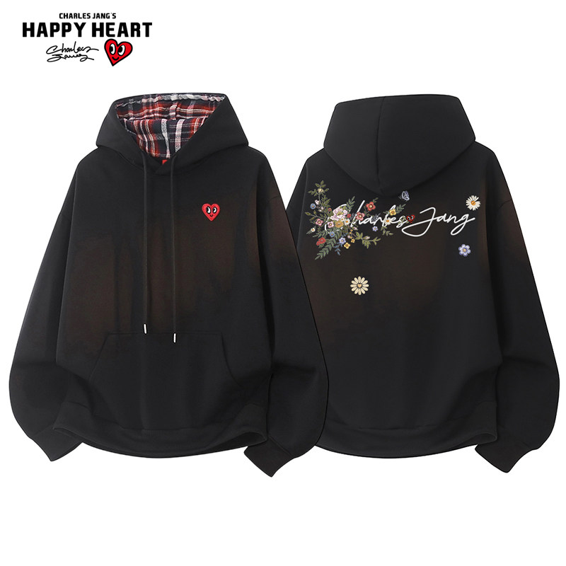 查尔斯桃心美式连帽卫衣秋冬季花卉字母印花拼色百搭加厚情侣上衣