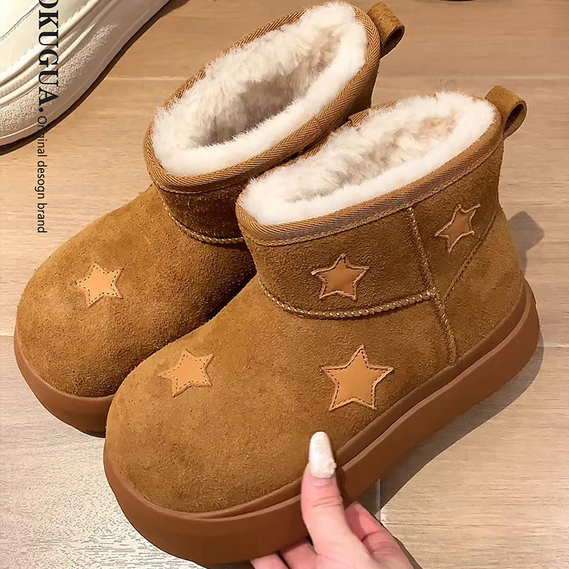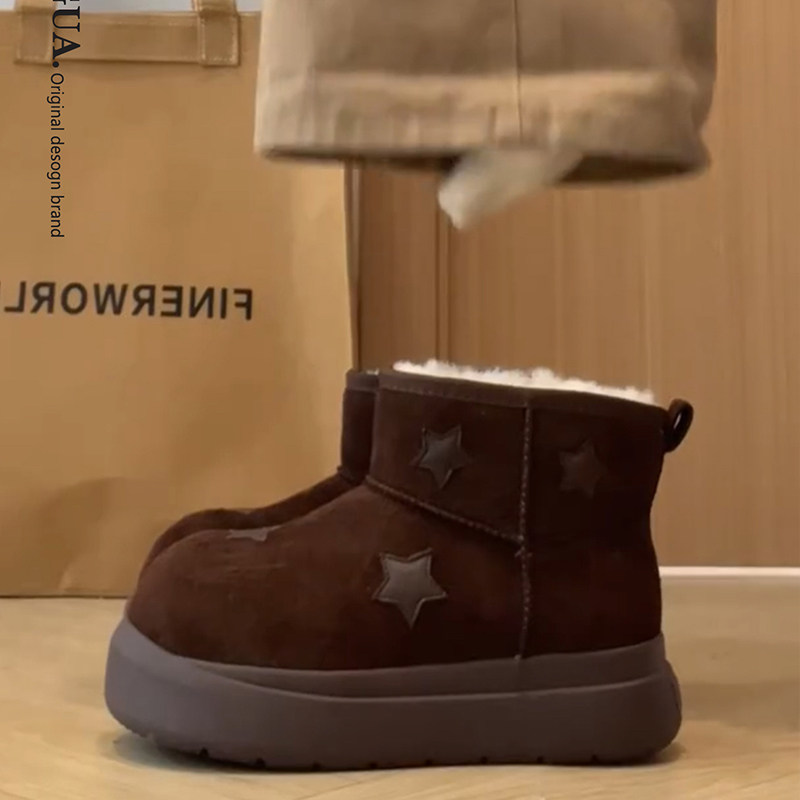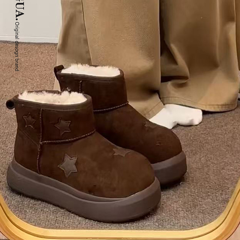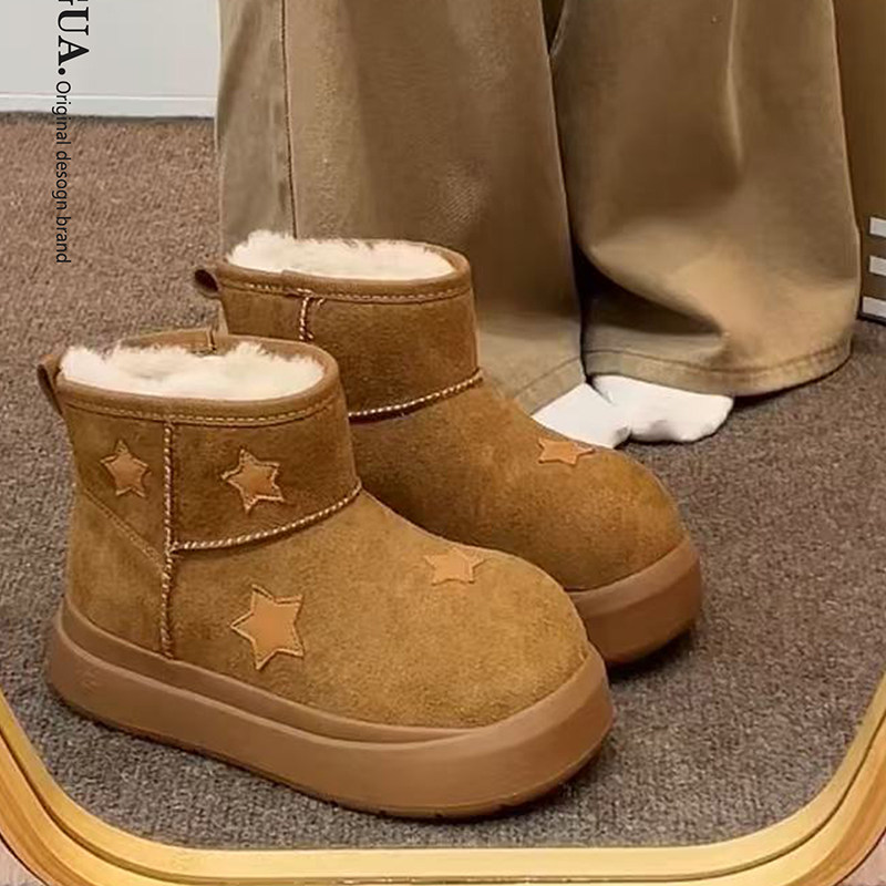 星星雪地靴女款2025新款冬季加绒大头面包鞋保暖短靴厚底雪地棉鞋