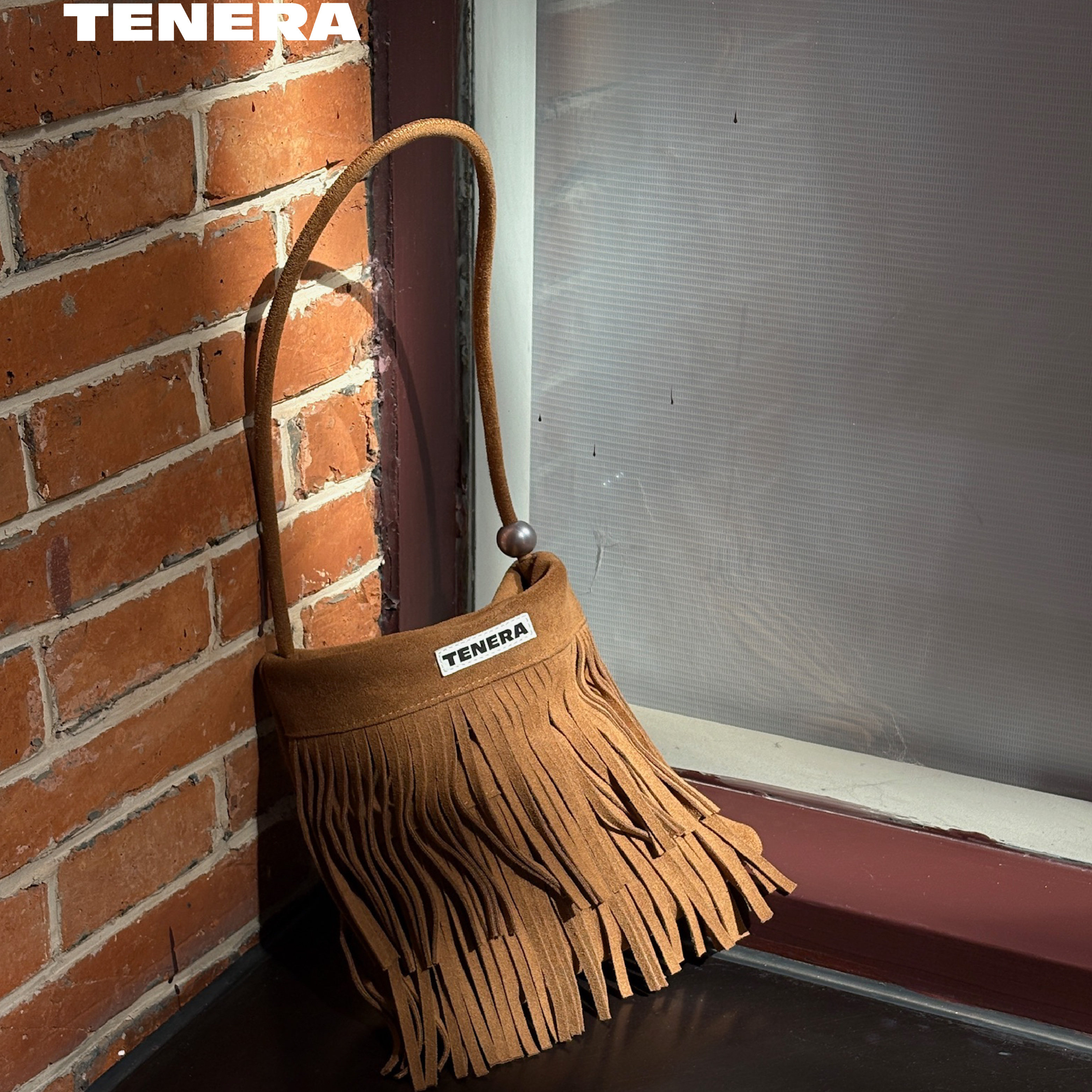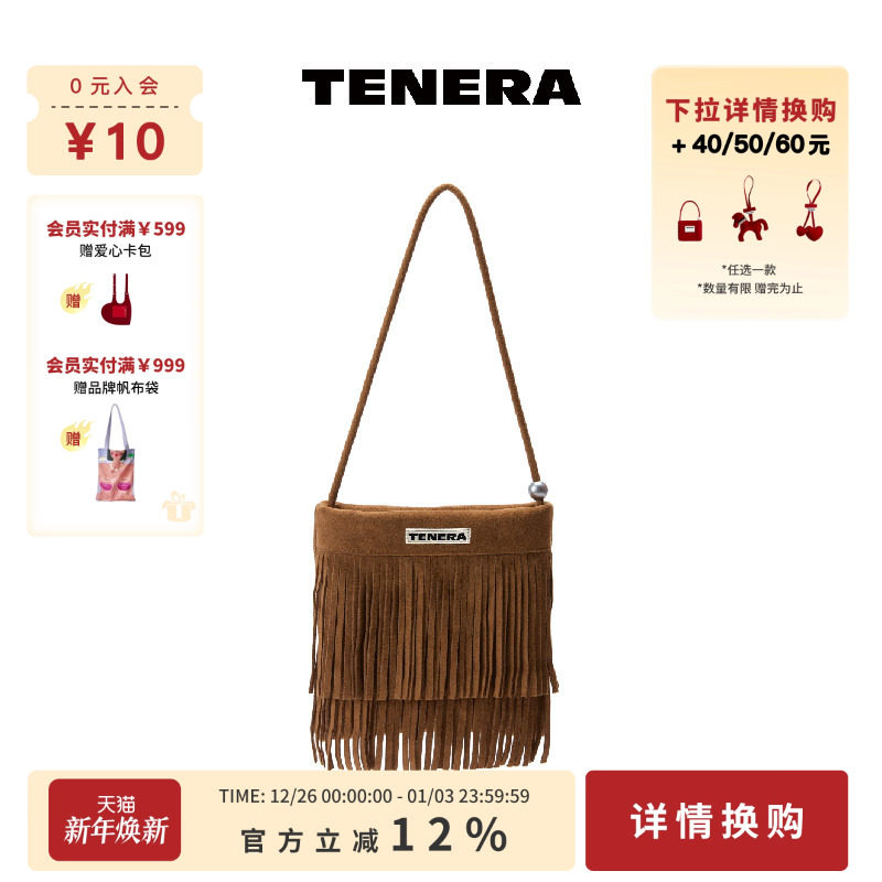TENERA波嬉系列麂皮流苏珍珠小方包腋下包包女款2025新款单肩包