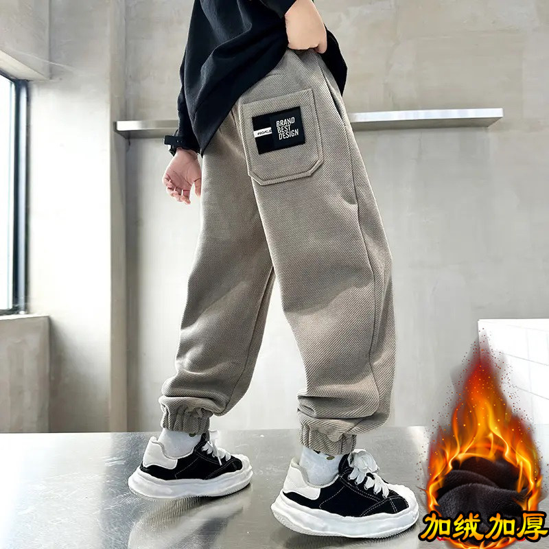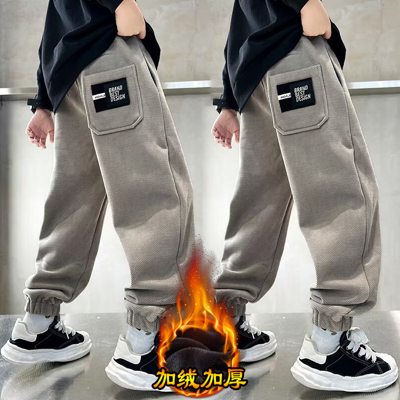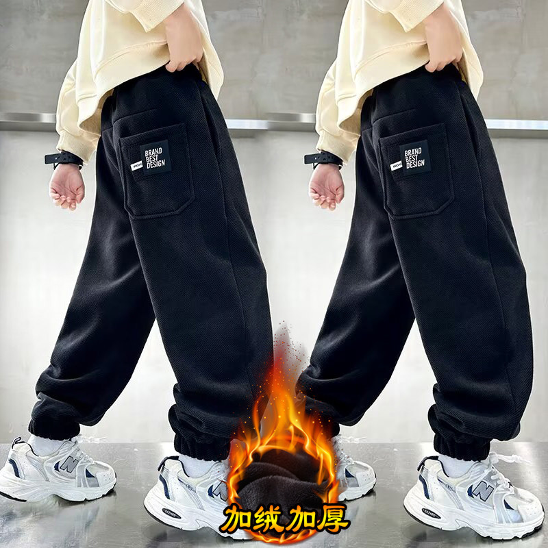 儿童装男童加绒裤子秋冬款2025新款男孩冬季加厚中大童运动卫裤潮