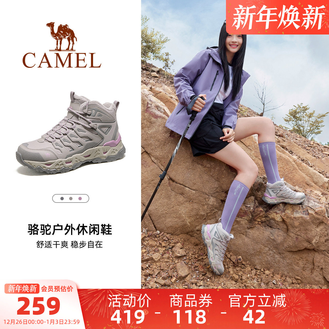 骆驼女鞋2025冬季新款户外加绒保暖棉鞋户外徒步登山鞋厚底短靴子