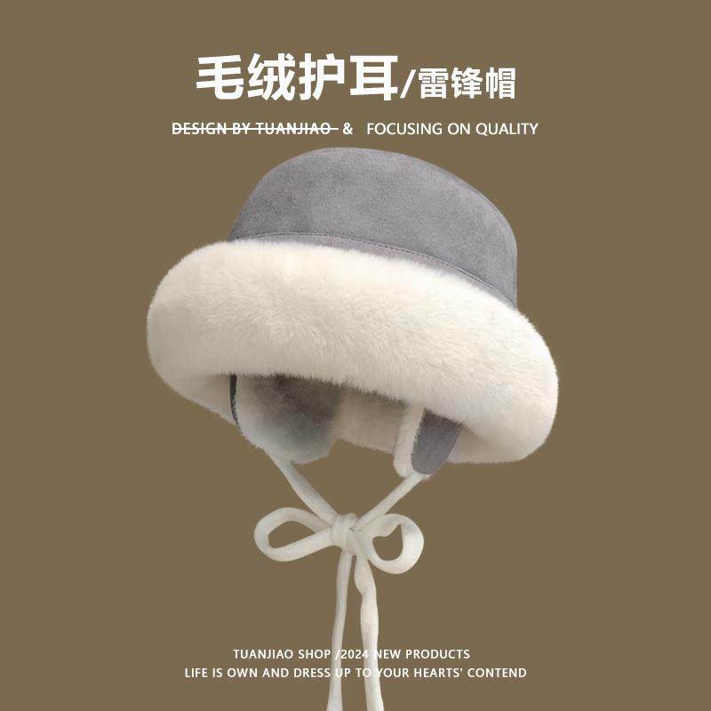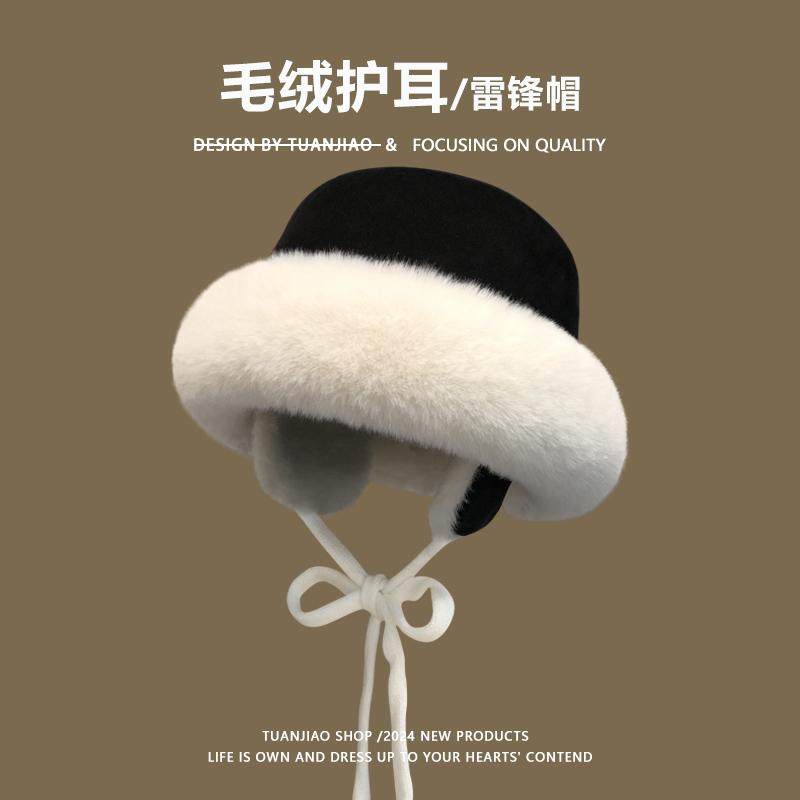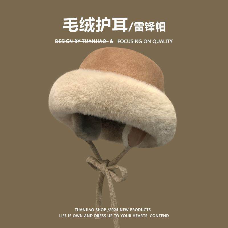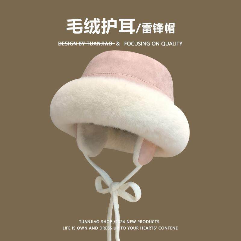 护耳帽子女秋冬毛绒渔夫帽加厚保暖棉帽骑车防风防寒雷锋帽毛茸茸