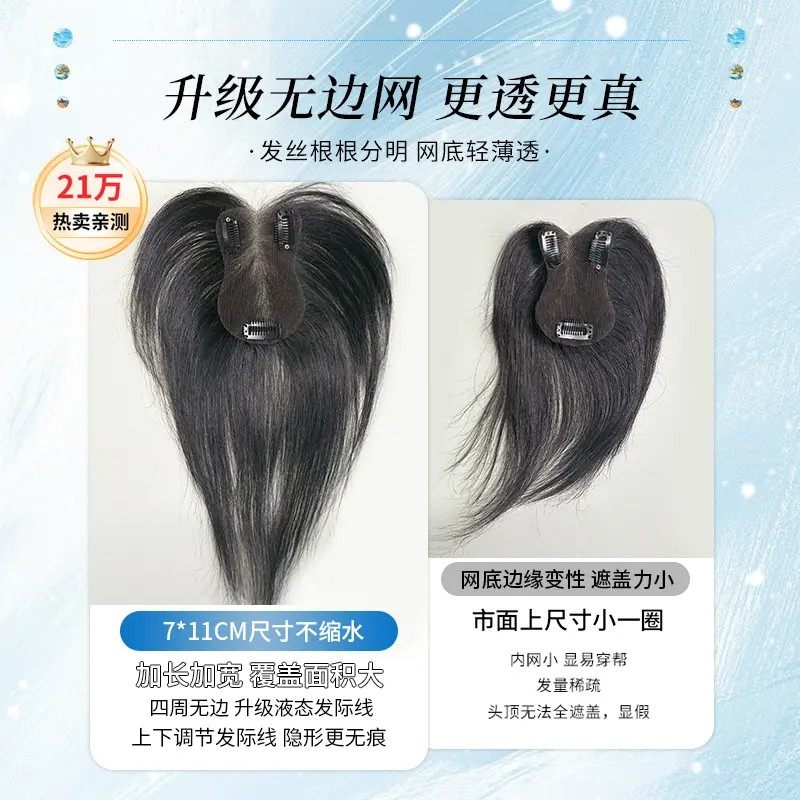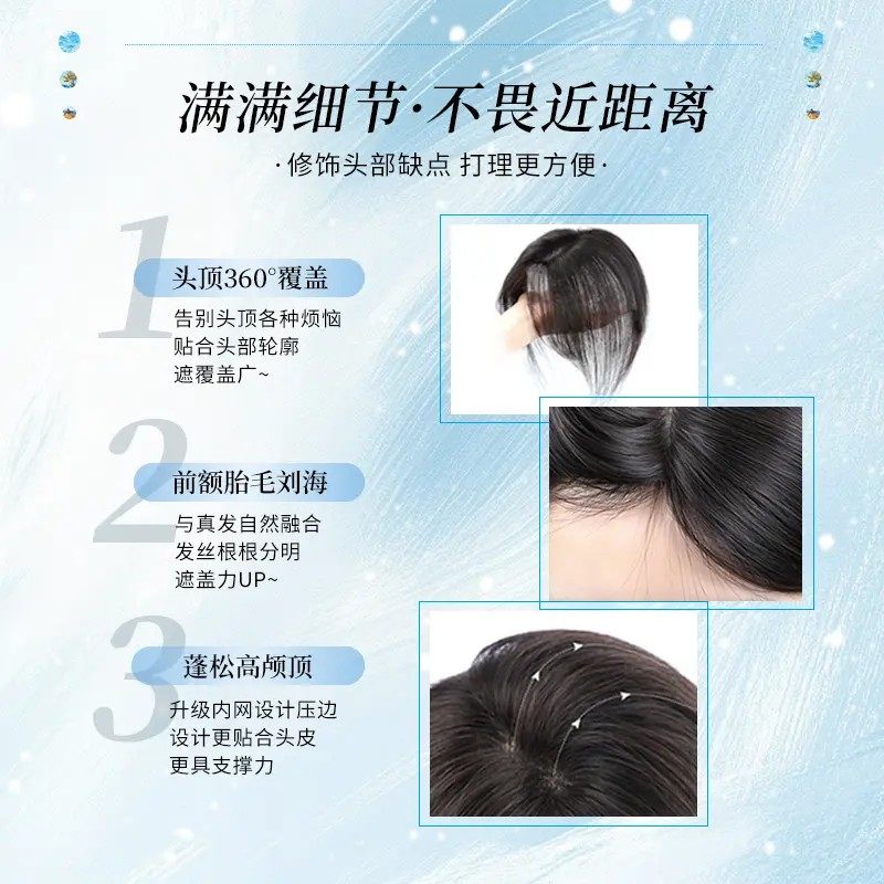 假发女片头顶真发隐形冬季氛围感假发头顶遮白八字刘海仿真发补发