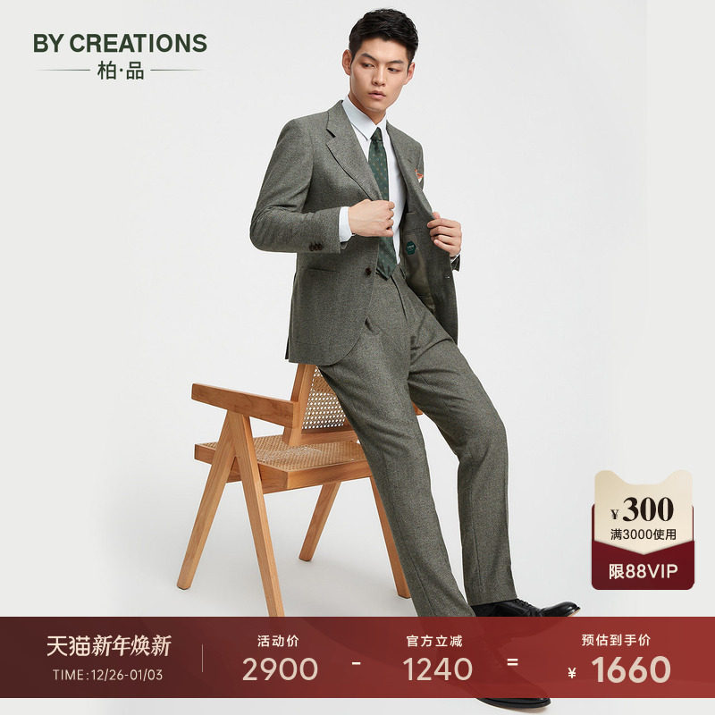 【进口DRAGO易打理】130支纯羊毛商务职业正装法兰绒西服套装男士
