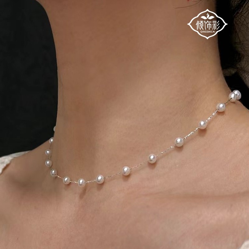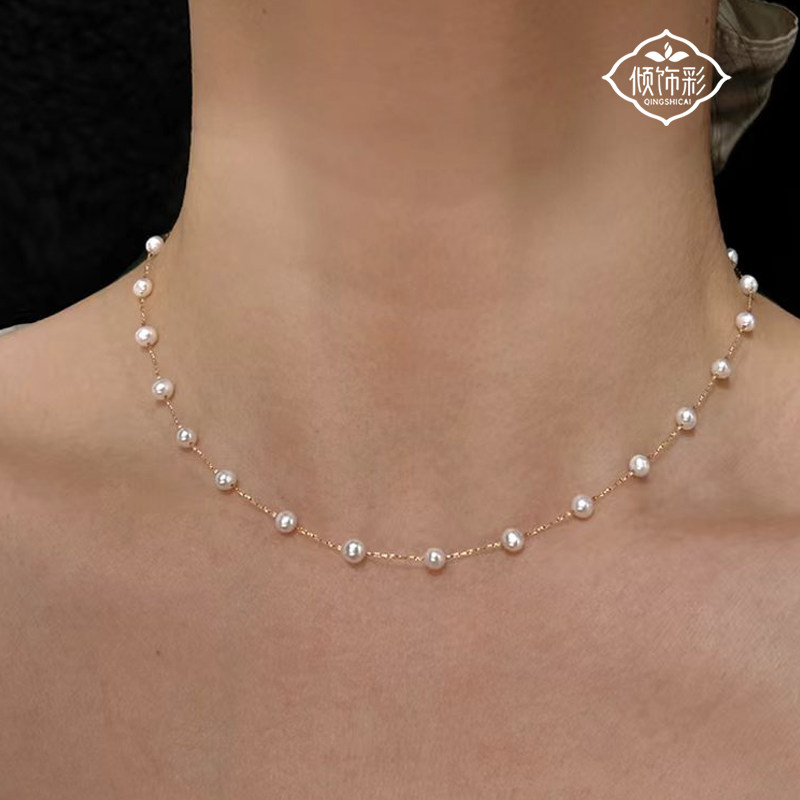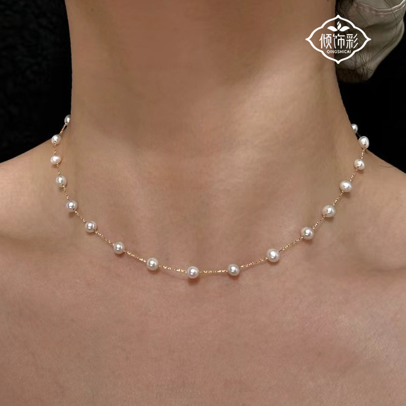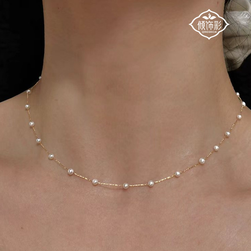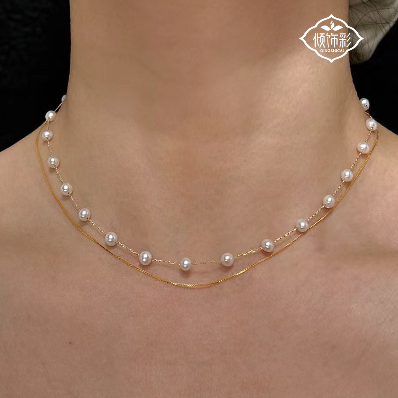 满天星天然淡水珍珠项链女款2025新款锁骨链法式错落叠戴链子精致