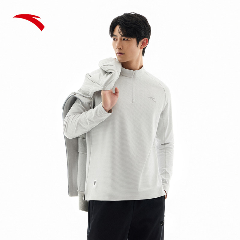 安踏半拉链立领卫衣男士冬季新款加绒长袖打底衫健身跑步运动上衣