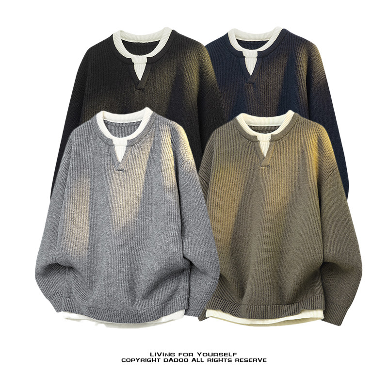 回力V领假两件毛衣男士秋冬季2025新款宽松线衣男生针织衫秋上衣