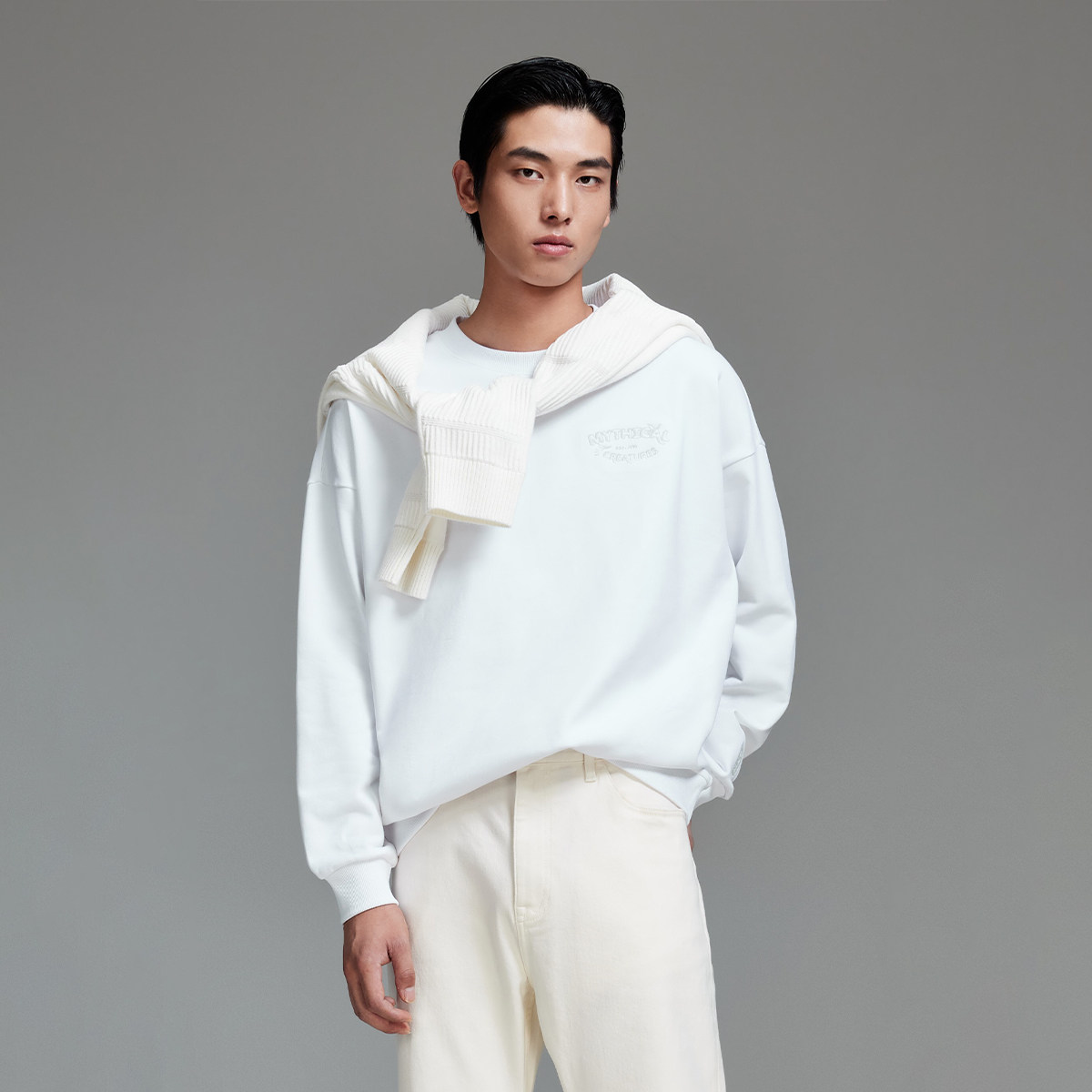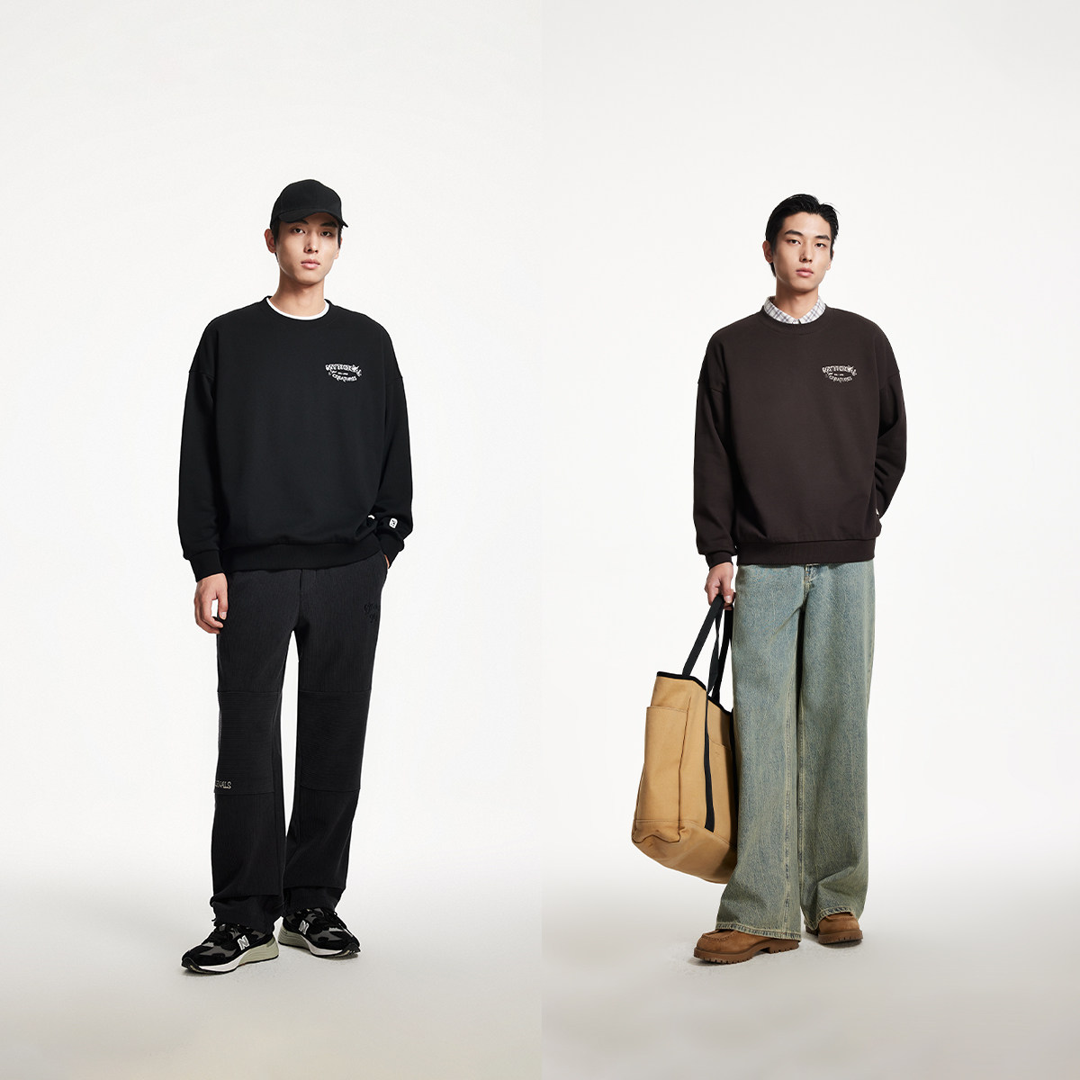 班尼路重磅卫衣男款秋季基础纯色圆领内搭男款宽松大码正肩套头衫