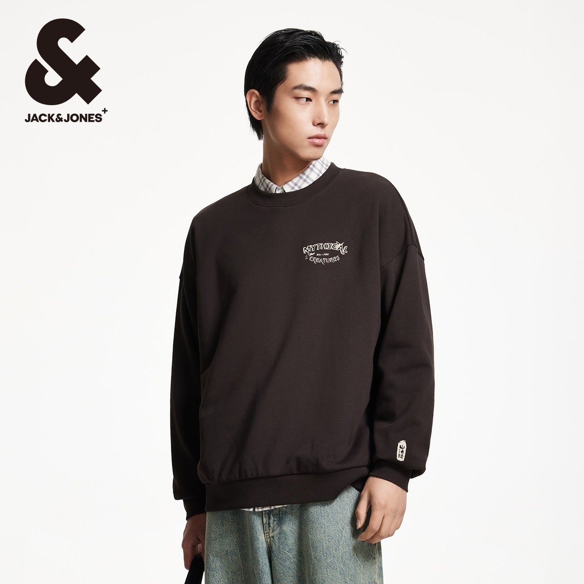 杰克琼斯男装秋季新款多色袖口山海经刺绣LOGO潮流百搭圆领卫衣