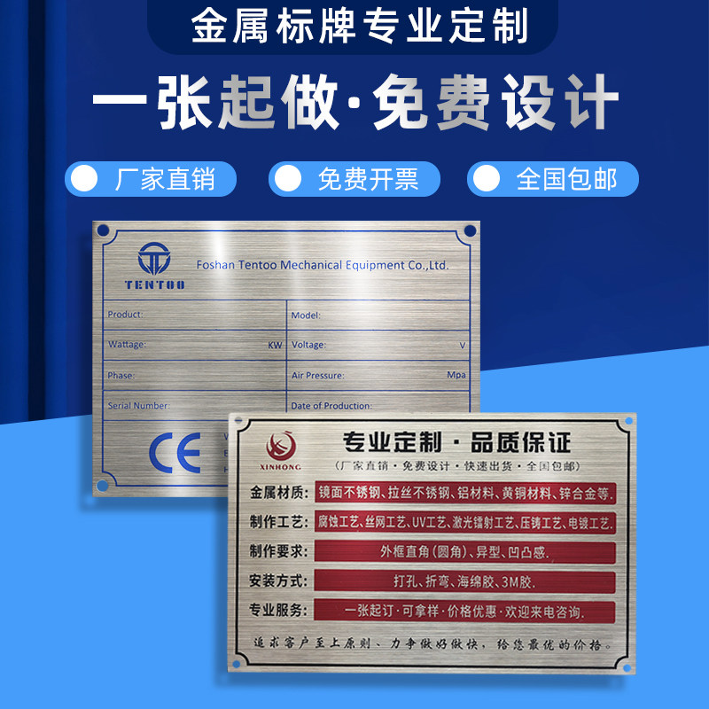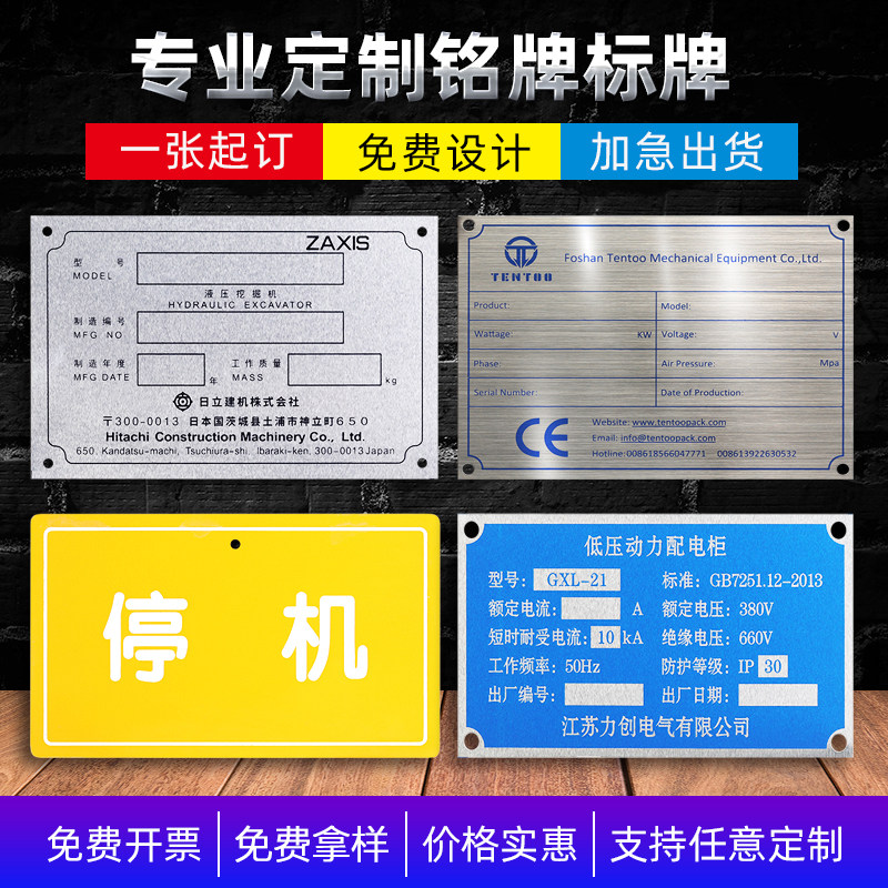 金属铭牌机械面板标牌不锈钢标识牌铜铝牌腐蚀丝印UV印刷激光定制