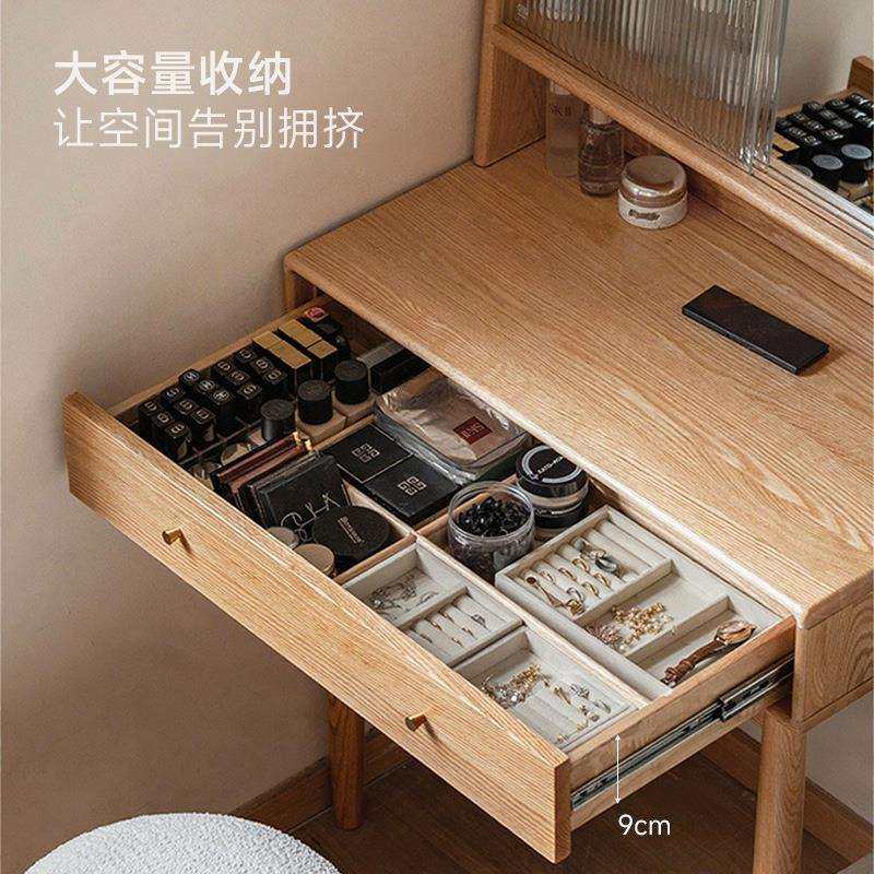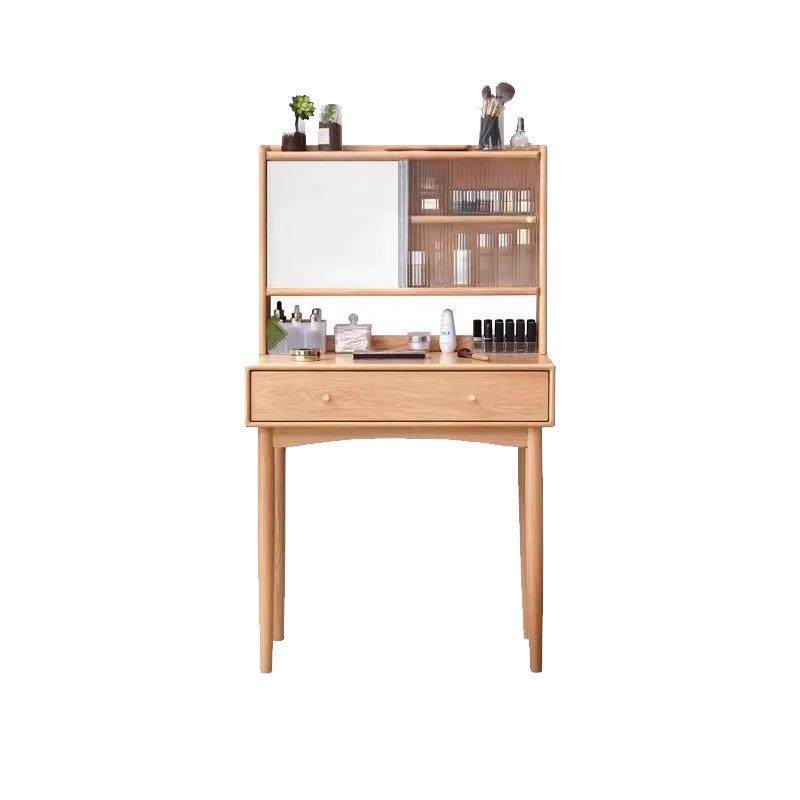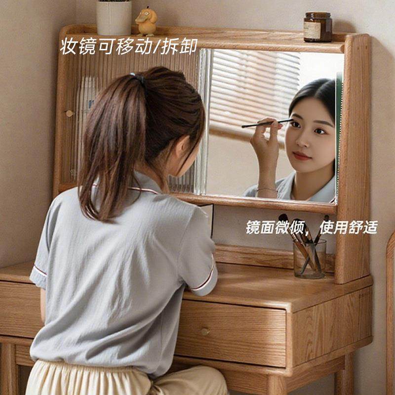 实木梳妆台小型现代卧室简约小户型化妆桌书桌一体2025新款化妆镜
