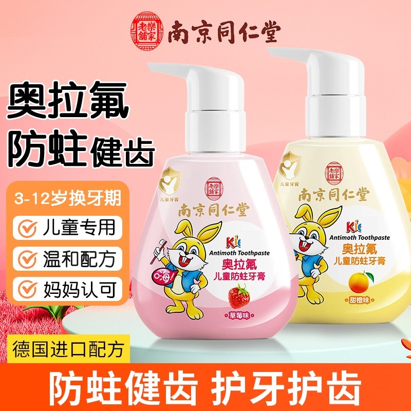 南京同仁堂儿童牙膏3-6-12岁含氟防蛀牙龋齿去黄黑牙按压式奥拉氟