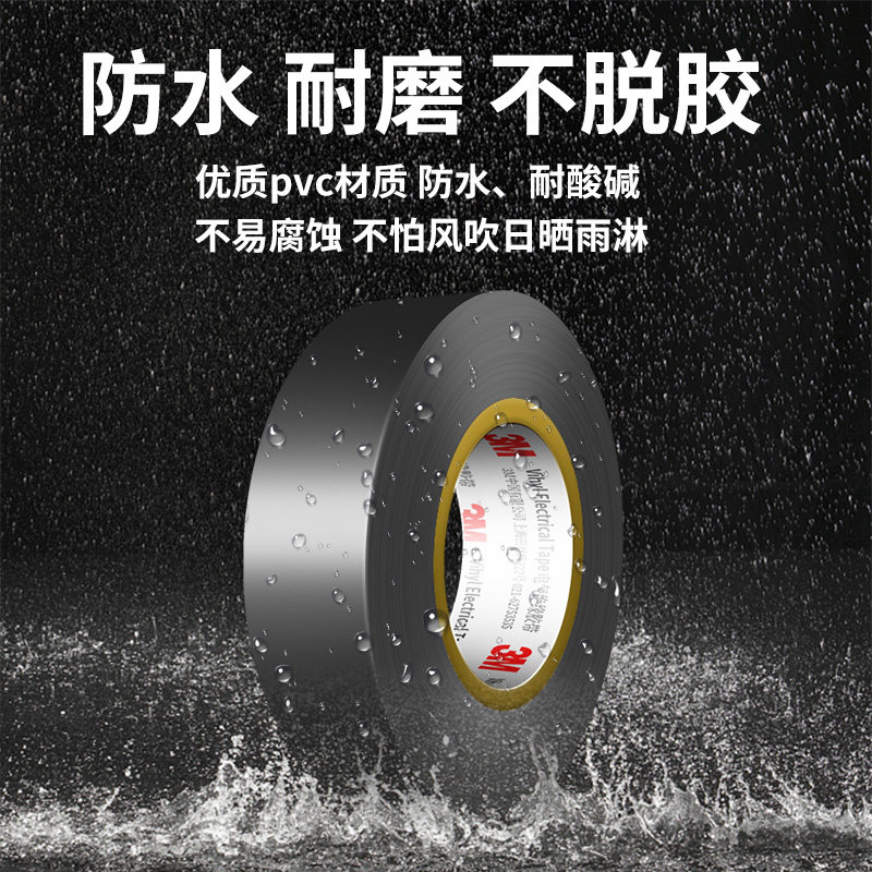3M电工胶带1500/1600pvc耐高温阻燃专用电气线防水黑白色绝缘胶带