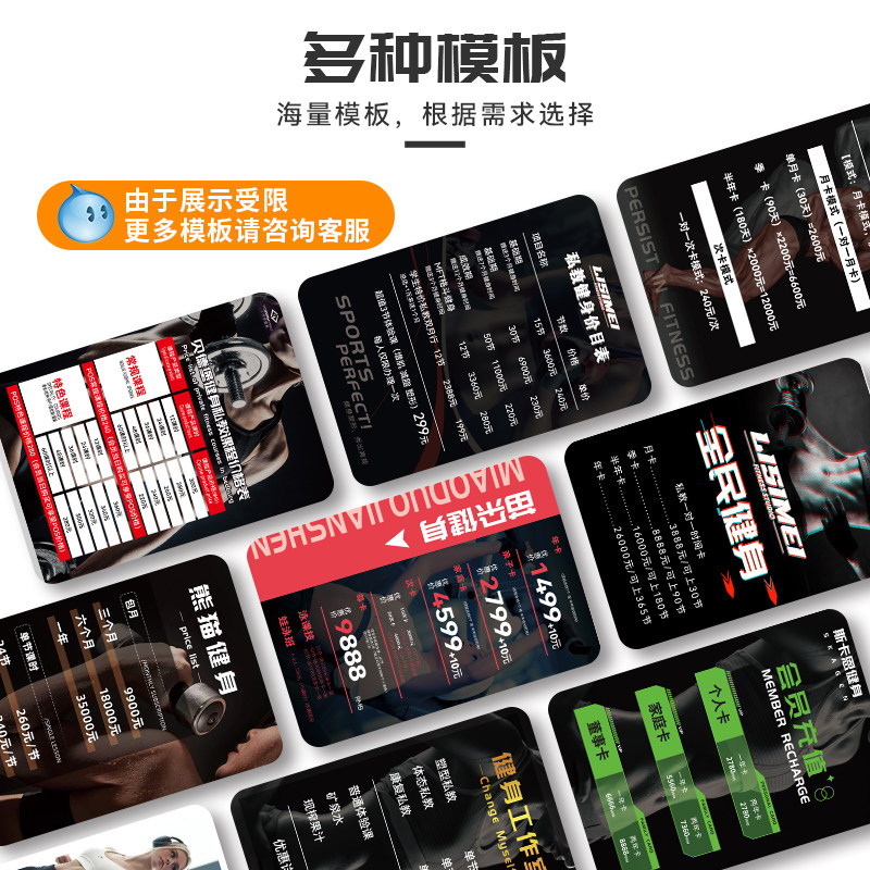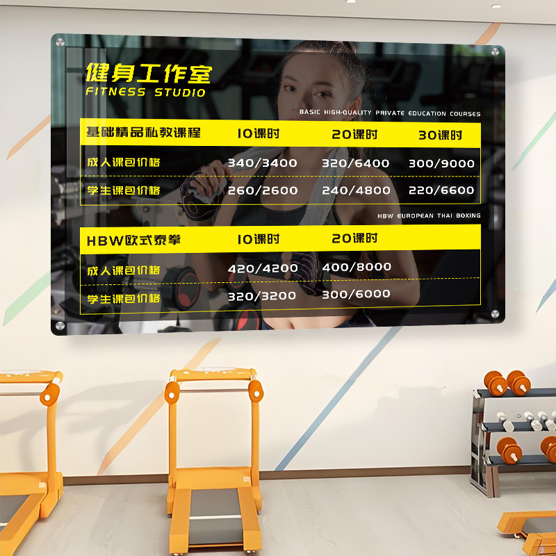 健身房价目表定制馆普拉提汽车美容补胎网吧棋牌室挂墙墙贴亚克力广告展示牌会员充值瑜伽馆价格表设计制作