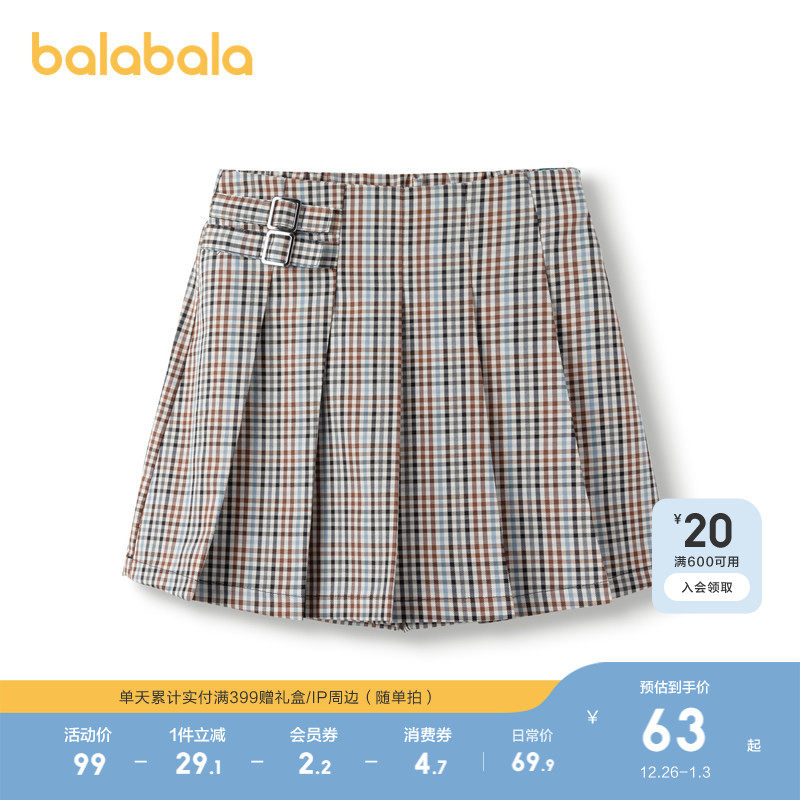 【商场同款】巴拉巴拉童装儿童裙子女童春秋短裙格纹半身裙裤洋气