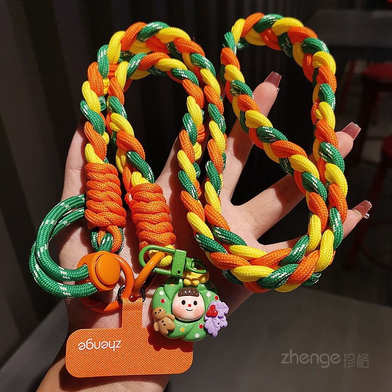 新款手机挂绳斜挎可背加粗撞色长链时尚女户外登山编织肩带壳结实