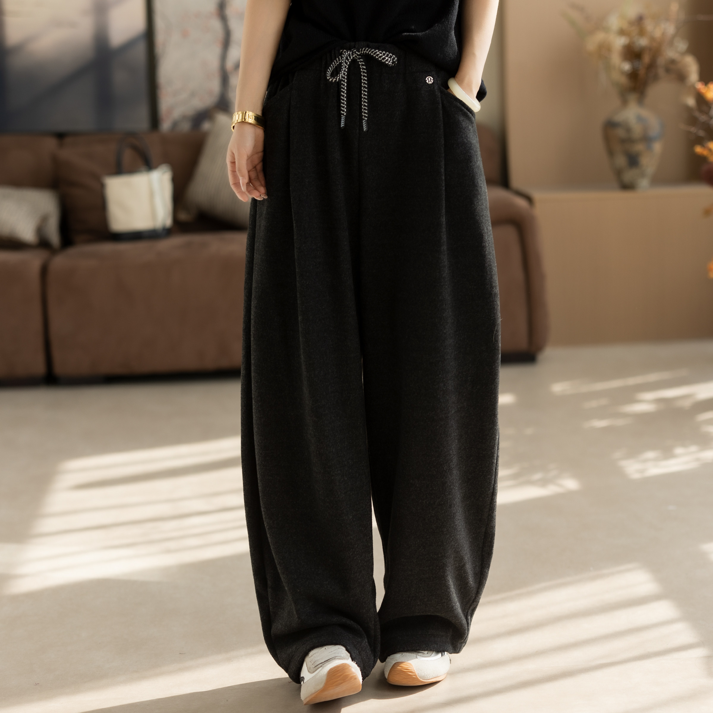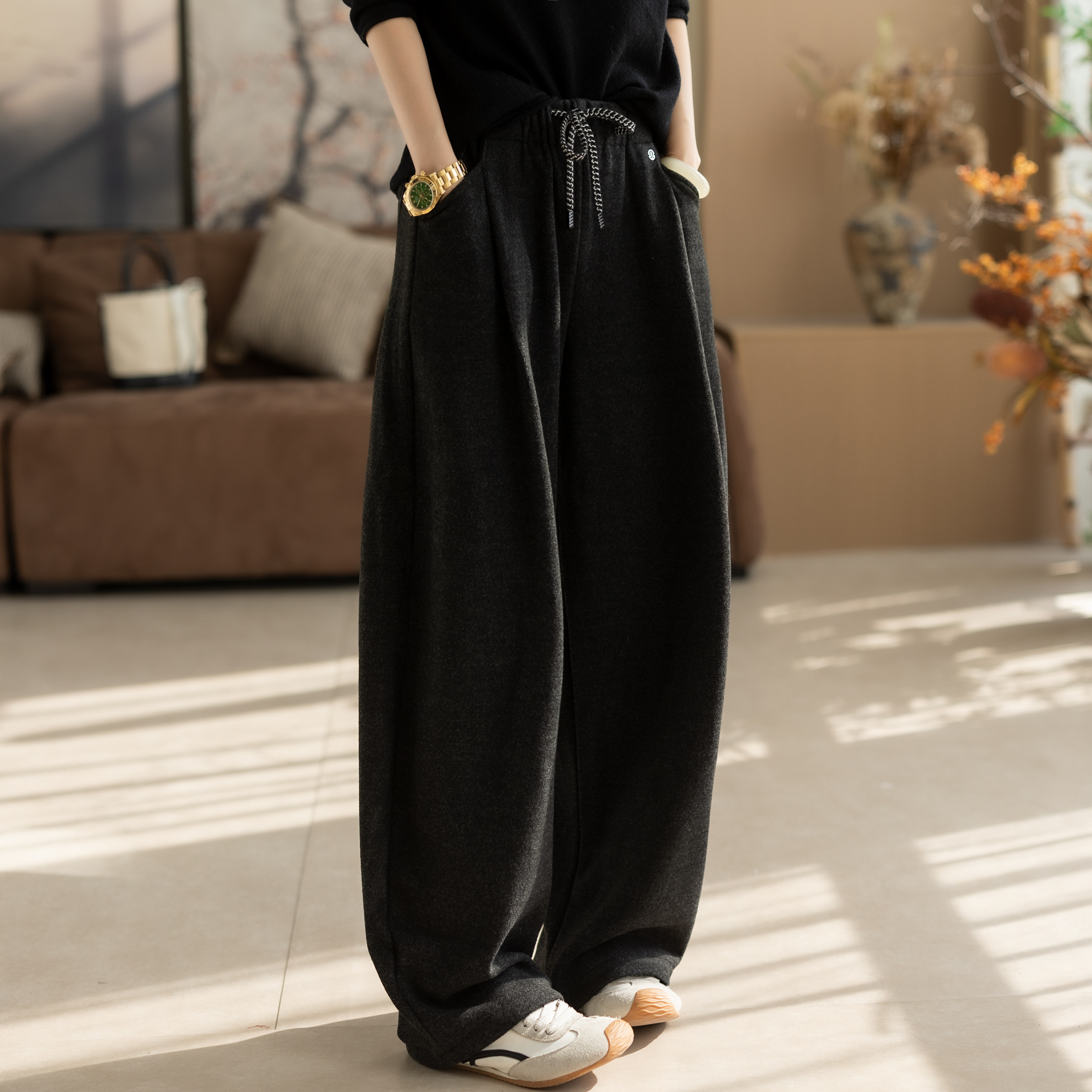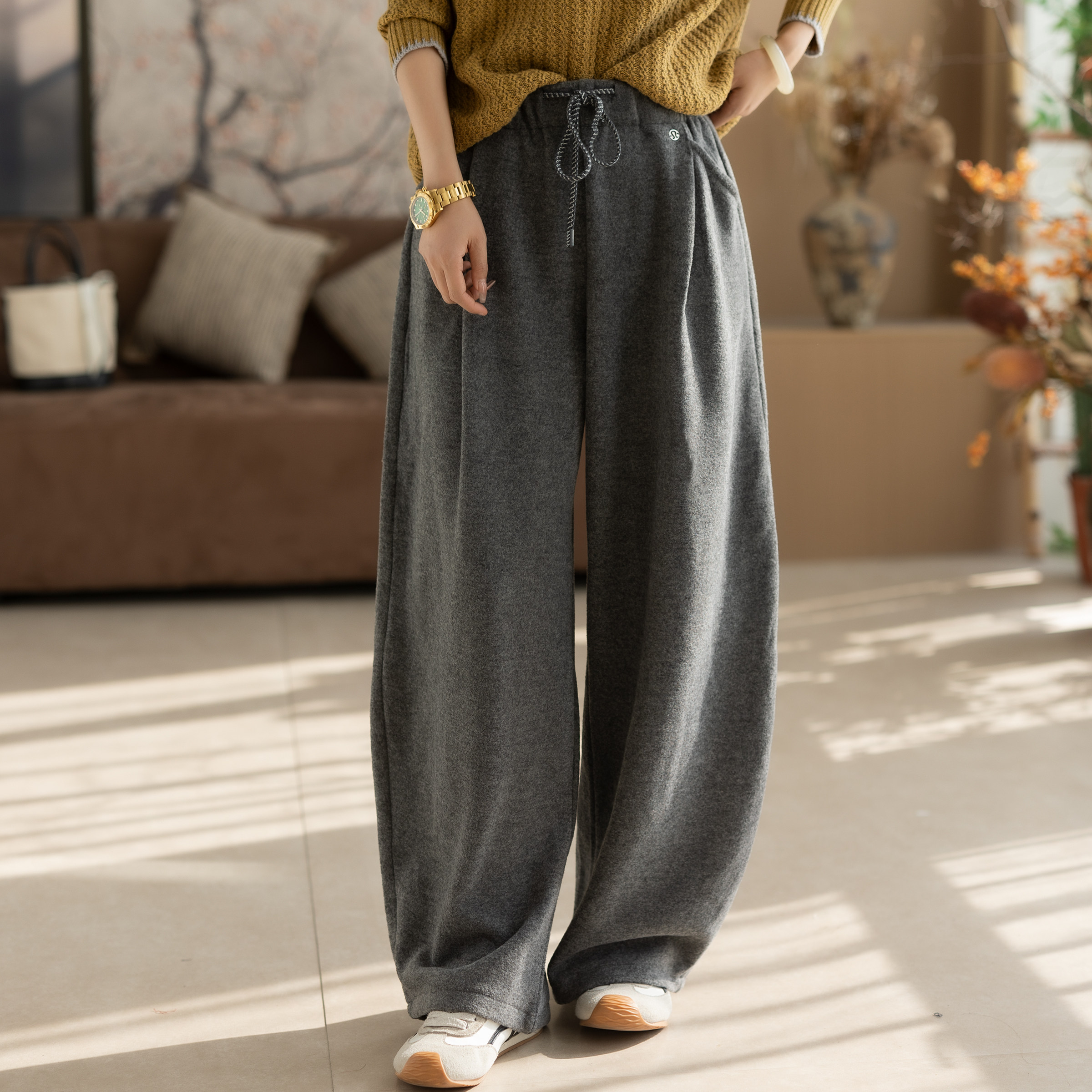 咖咪羽休闲裤女秋冬新款加绒加厚宽松复古阔腿裤高腰流行女装裤子