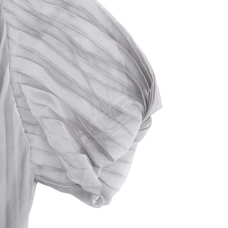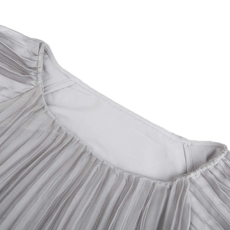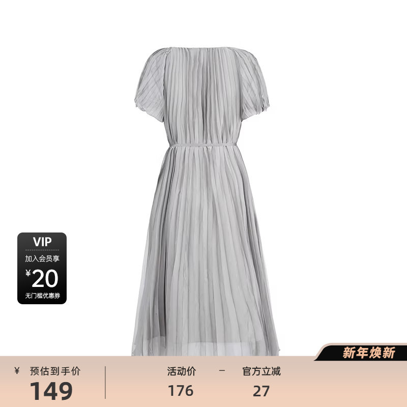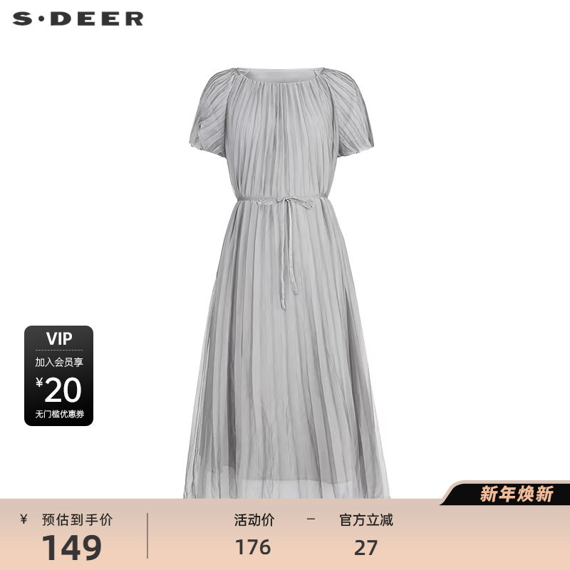 sdeer圣迪奥女装圆领压褶收腰泡泡袖连衣裙S223Z12D6