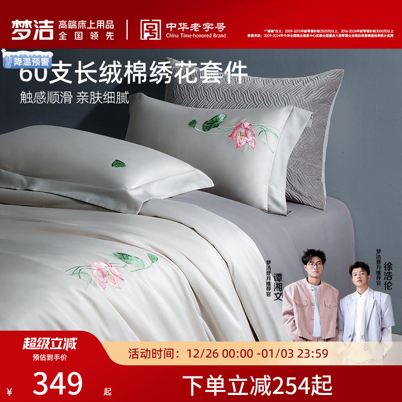 梦洁60支长绒棉床上三四件套全棉纯棉2025新款床单被套床品套件