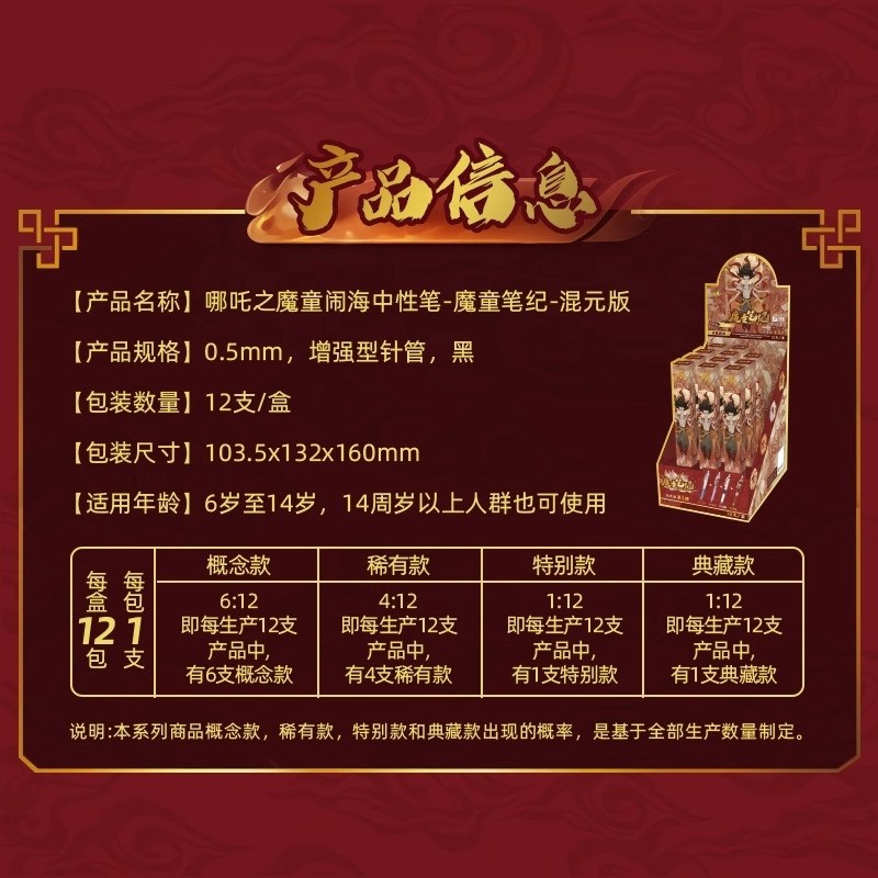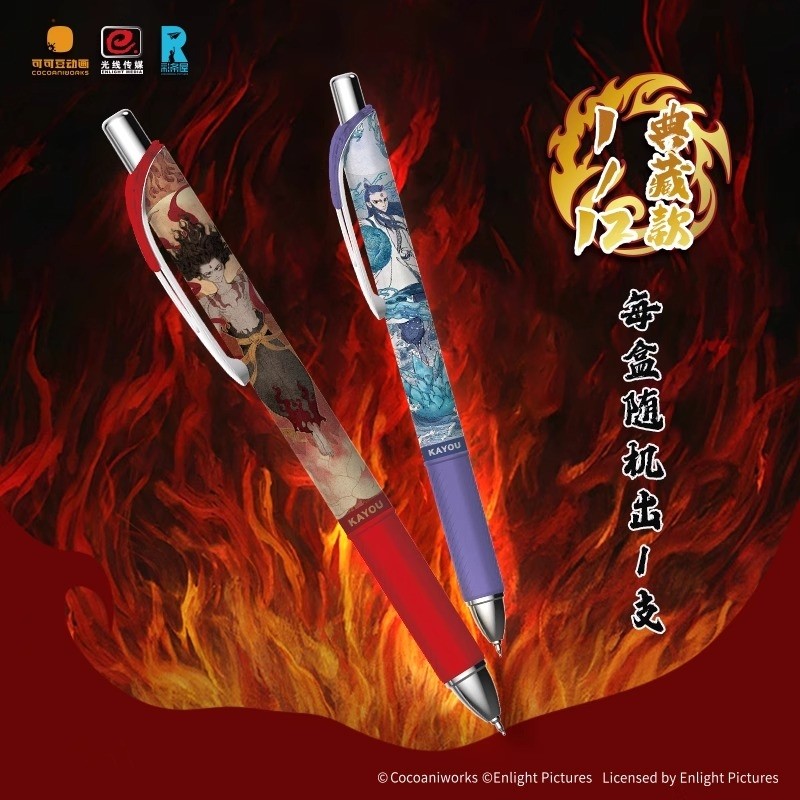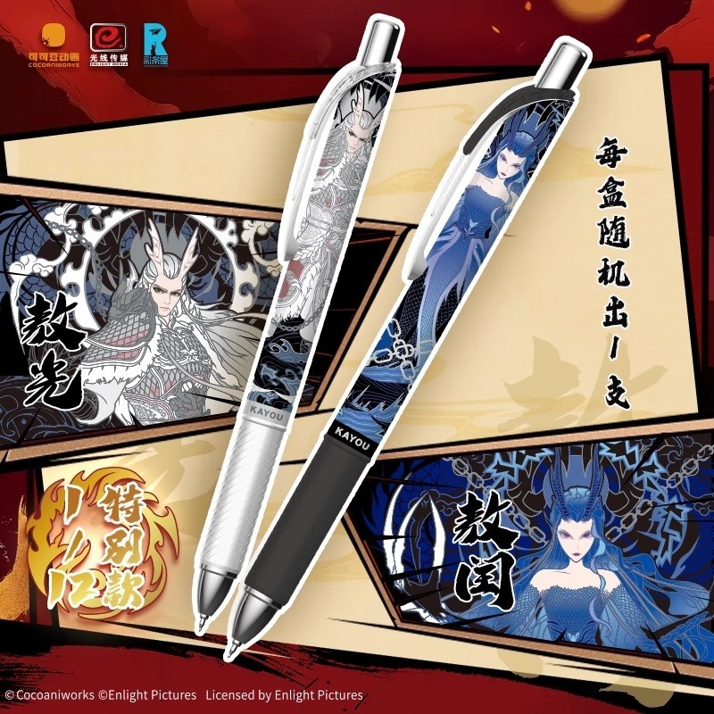 哪吒盲盒笔中性笔正版卡游动漫周边文具小学生专用按动速干高颜值敖丙闹海黑色水笔0.5mm学习用品火影忍者