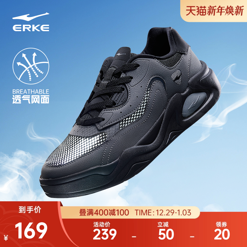 鸿星尔克板鞋小黑鞋冬季新款透气男鞋百搭休闲鞋学生黑色运动鞋子