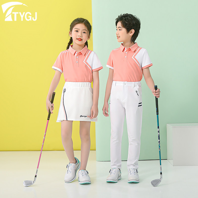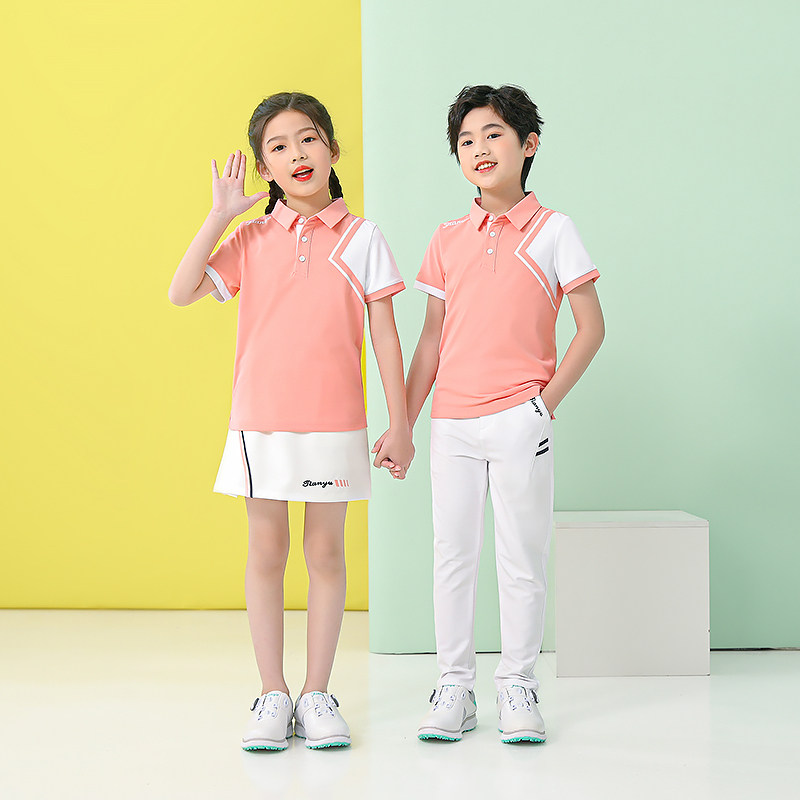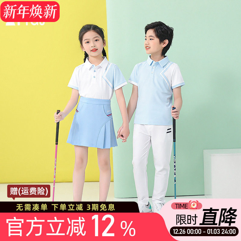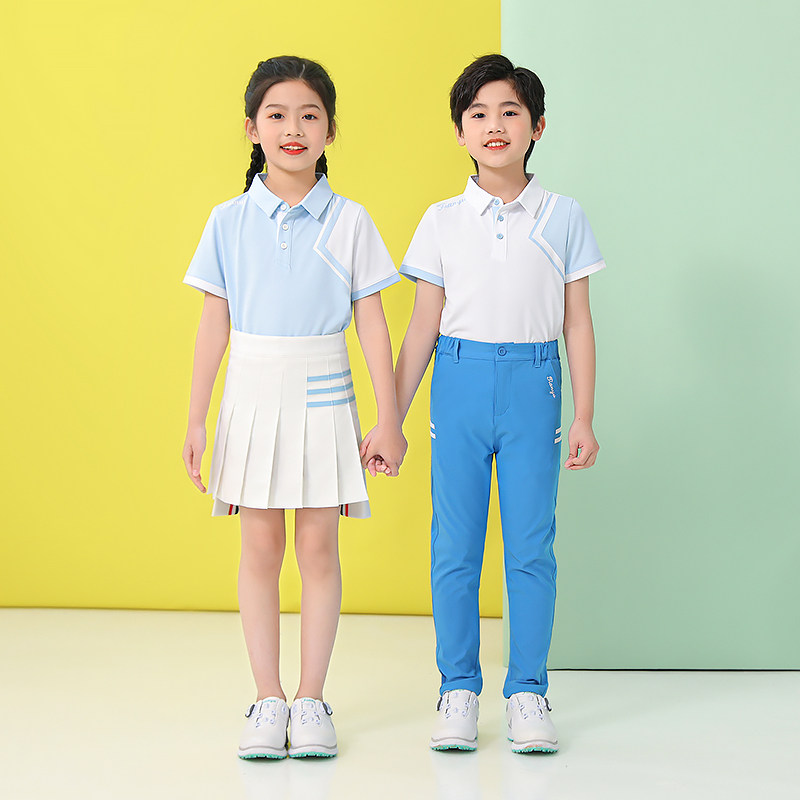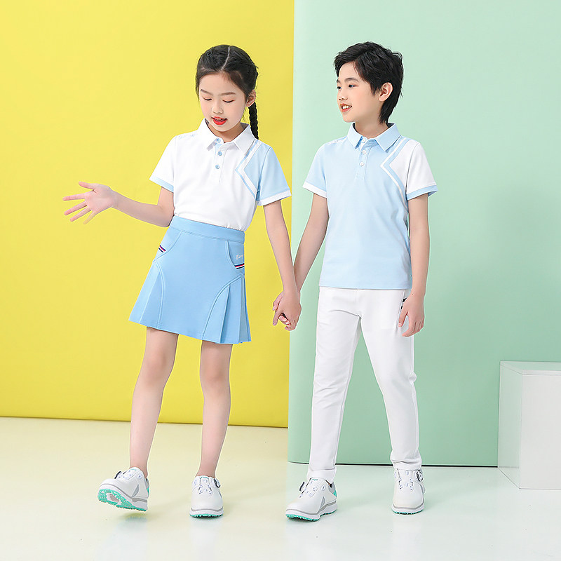 高尔夫球儿童男女童短袖T恤POLO衫学生校运动休闲白蓝色上衣服装