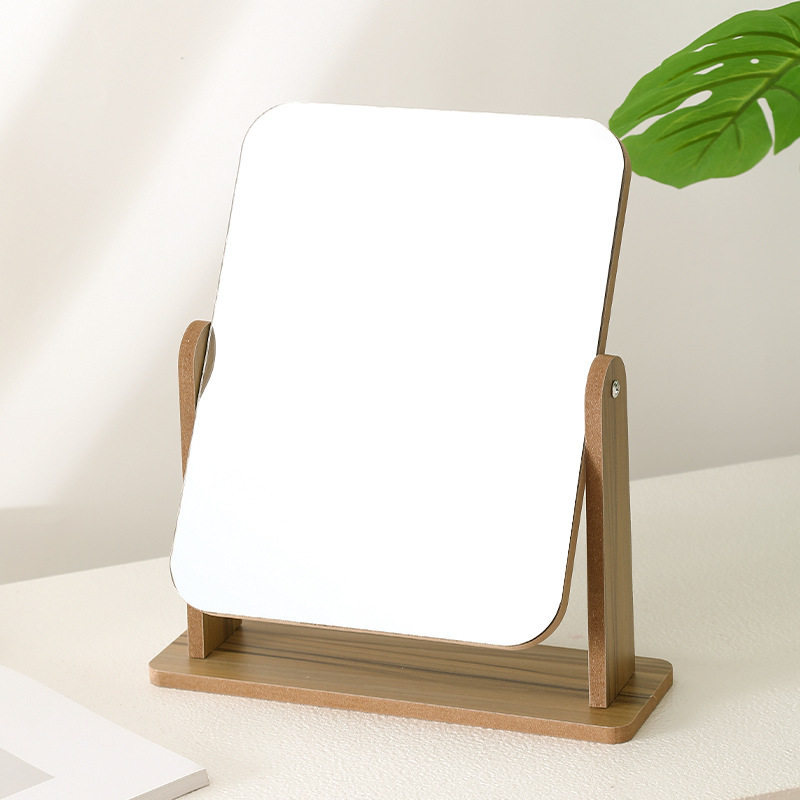 简约实木化妆镜家用桌面大号可翻转梳妆镜办公室小型便携台式镜子