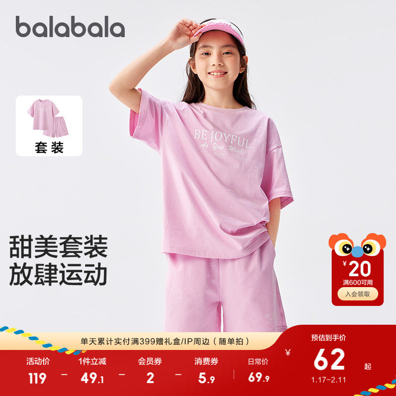 巴拉巴拉童装女童套装儿童春夏装2025两件套纯棉印花休闲时尚轻薄