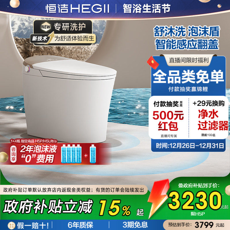 恒洁智能马桶全自动冲水式坐便器舒沐洗小户型家用H5P/H5Ultra