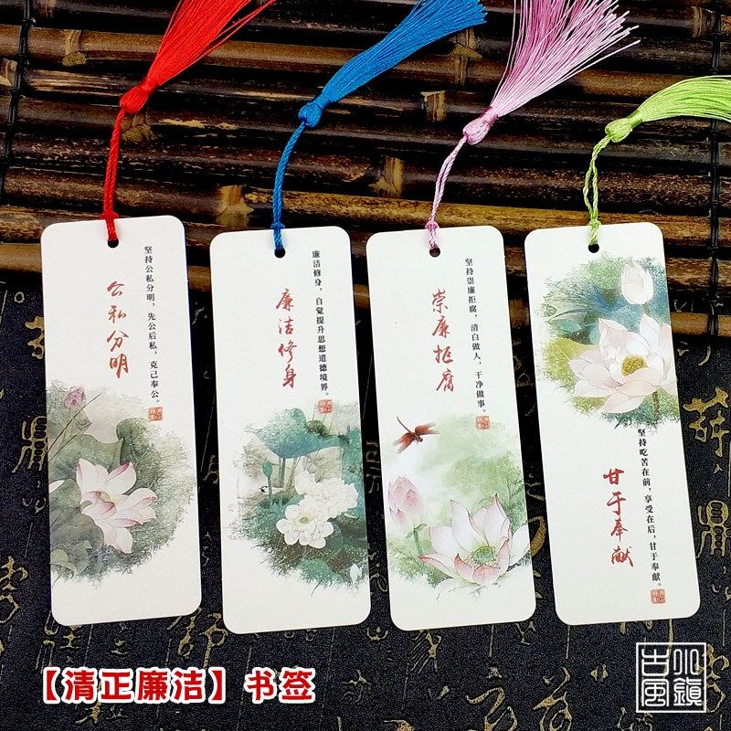 书签diy材料包古典中国风廉洁卡片来图定制纸质吊牌丝带流苏穗子