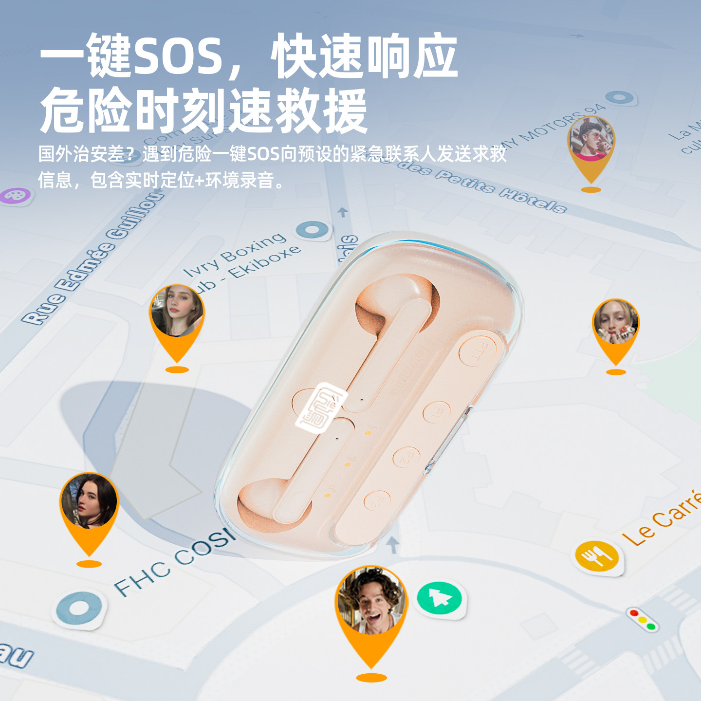 【出国必备】纽曼蓝牙耳机同声翻译一键SOS求救运动降噪无线耳机