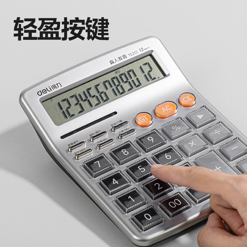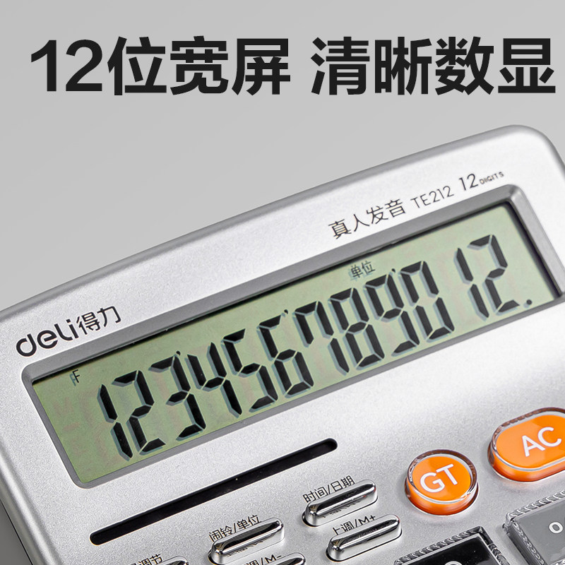 得力计算器办公用带语音太阳能计算器学生用大学财务小号便携双电源计算机器按键文具办公用品大号