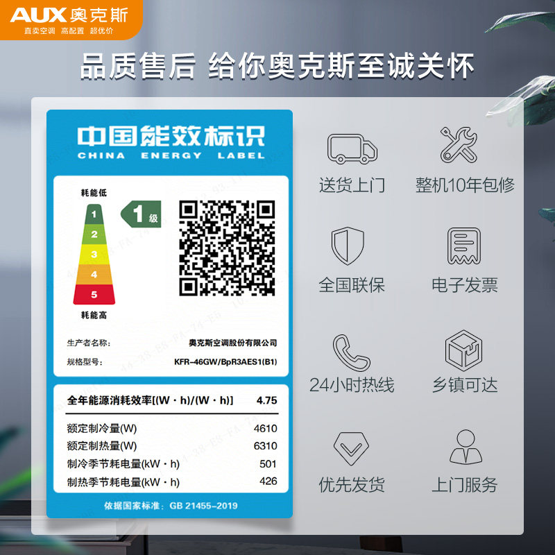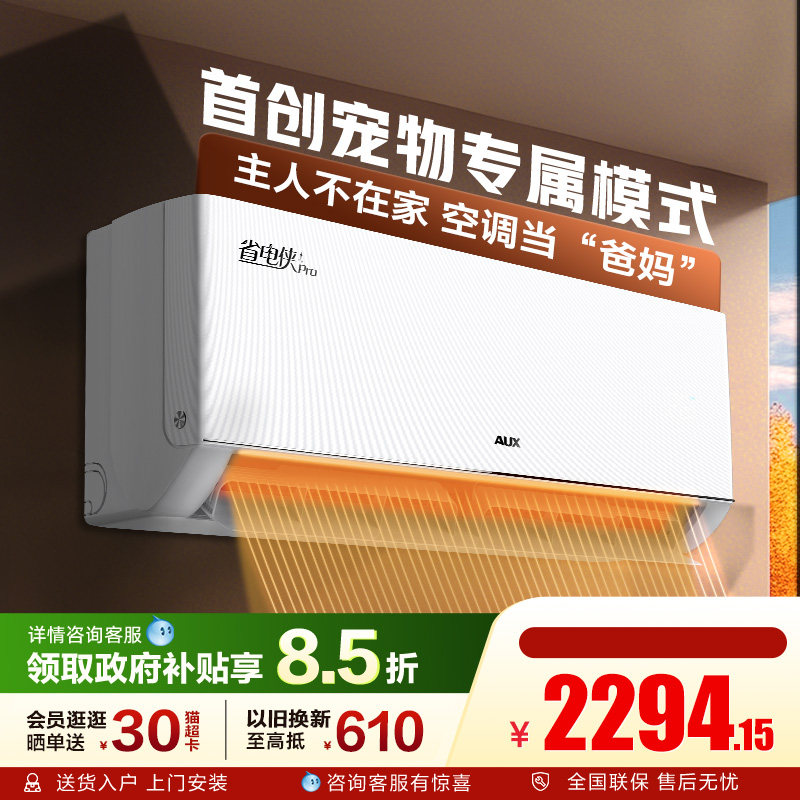 奥克斯省电侠PRO空调家用一级能效2匹卧室客厅挂机变频官方旗舰店