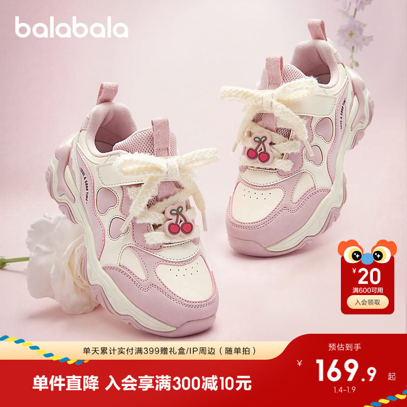 巴拉巴拉童鞋儿童运动鞋女童鞋2026新秋冬防滑加绒老爹鞋女款鞋子
