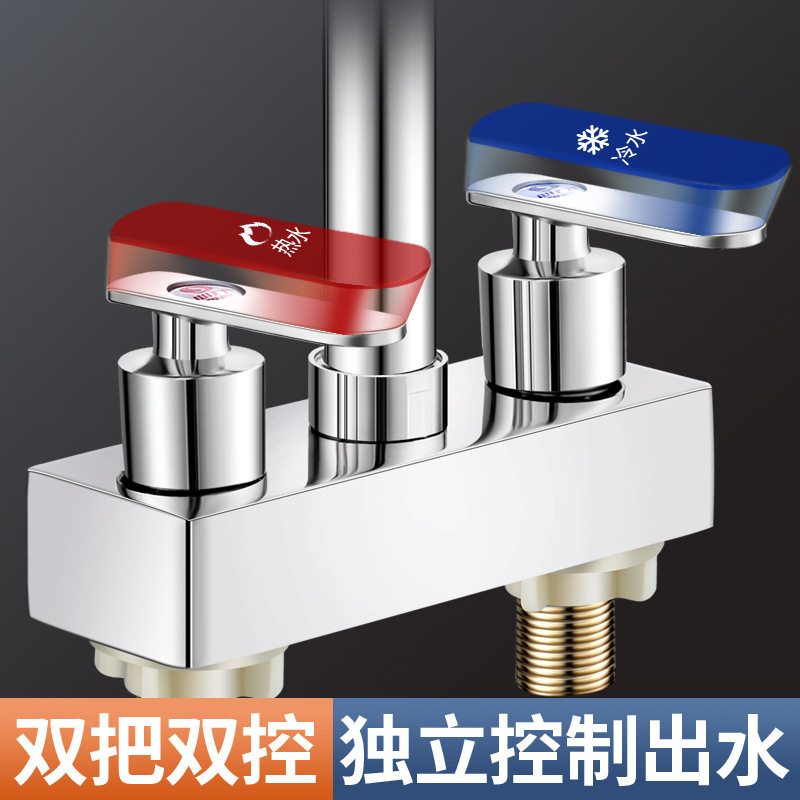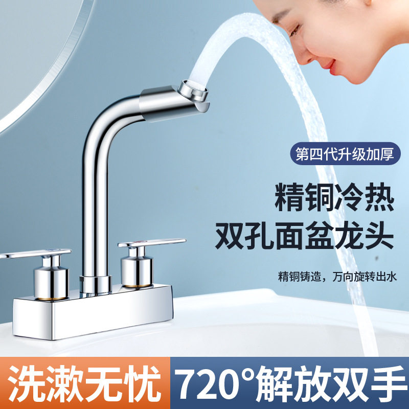 通用双孔面盆水龙头精铜洗脸盆洗手盆冷热双控两用卫生间台盆龙头