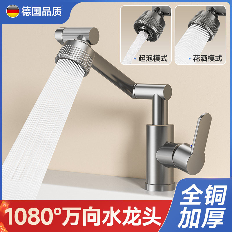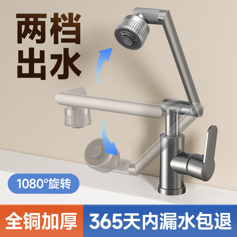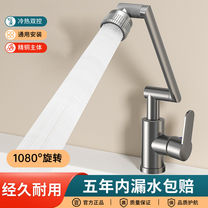 洗脸盆水龙头家用厨房洗手盆卫生间面盆冷热旋转万向机械臂龙头