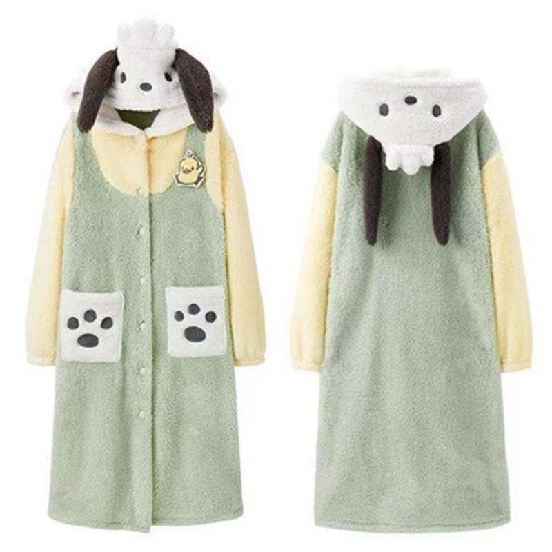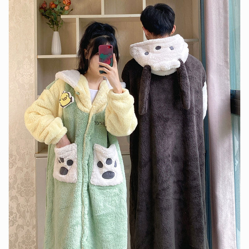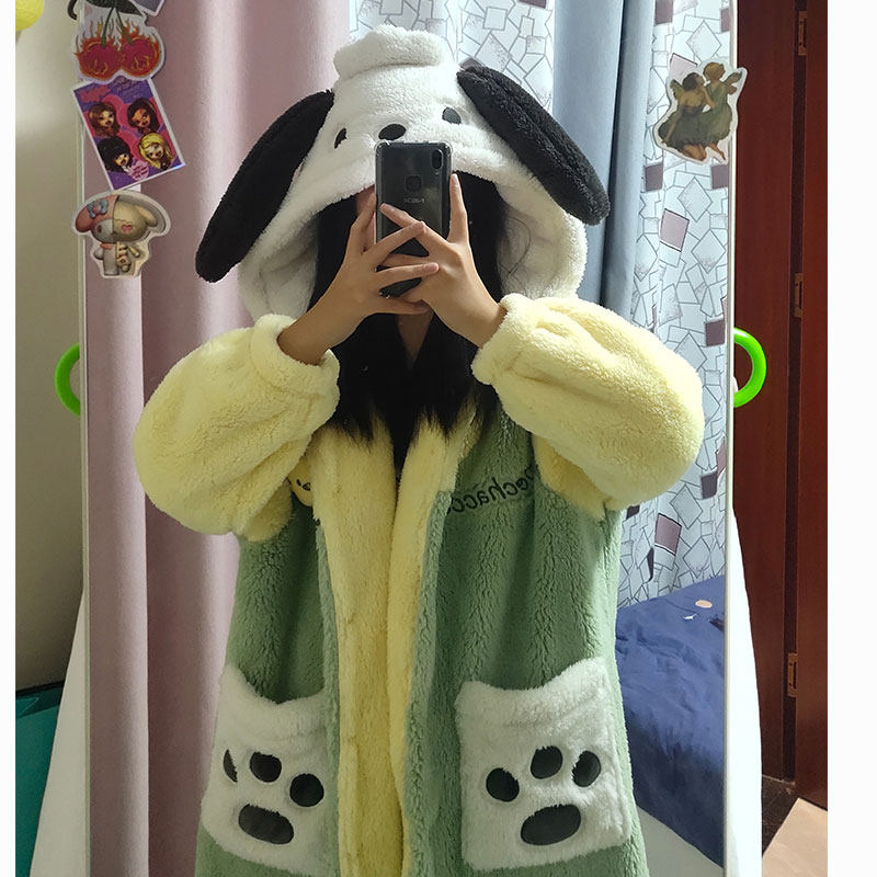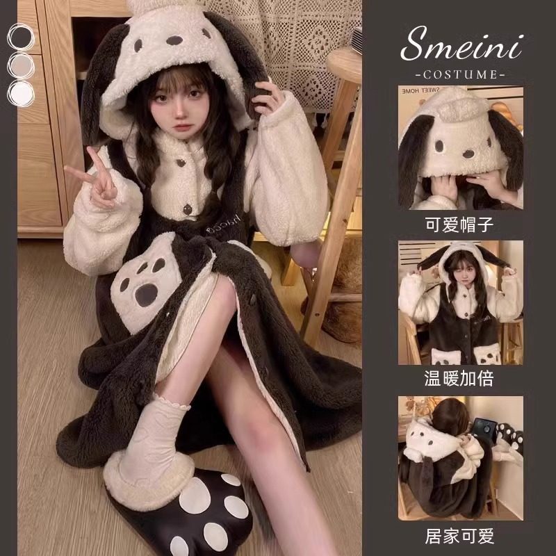 帕恰狗睡衣女秋冬可爱卡通珊瑚绒加厚情侣睡袍网红学生家居服套装