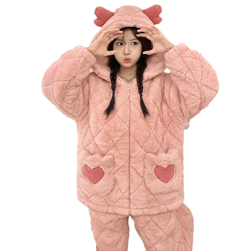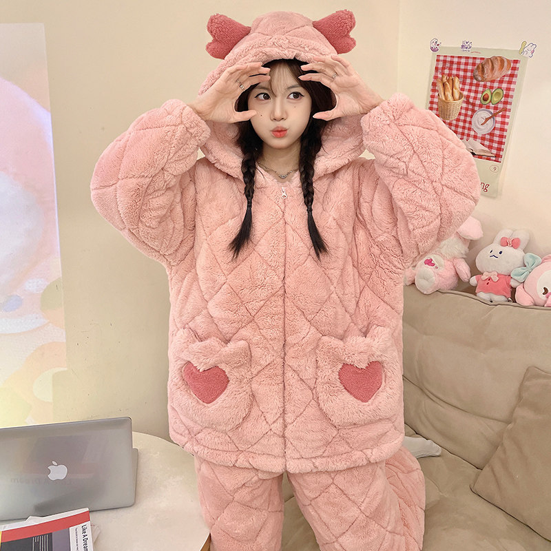 2025年冬款珊瑚绒睡衣女秋冬季加厚法兰绒加绒套装家居服春秋新款