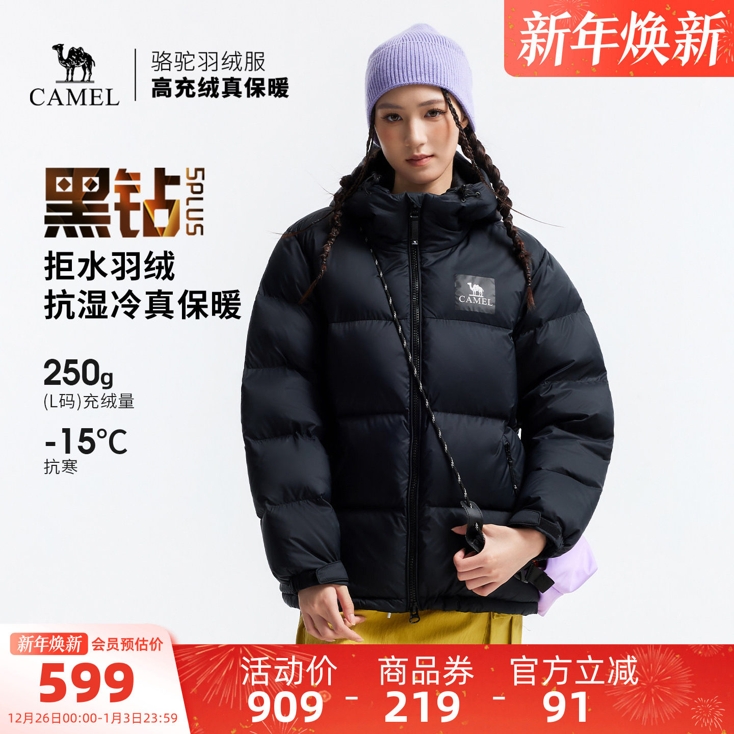 骆驼黑钻5PLUS户外羽绒服冬季新款女款男款加厚保暖拒水绒外套