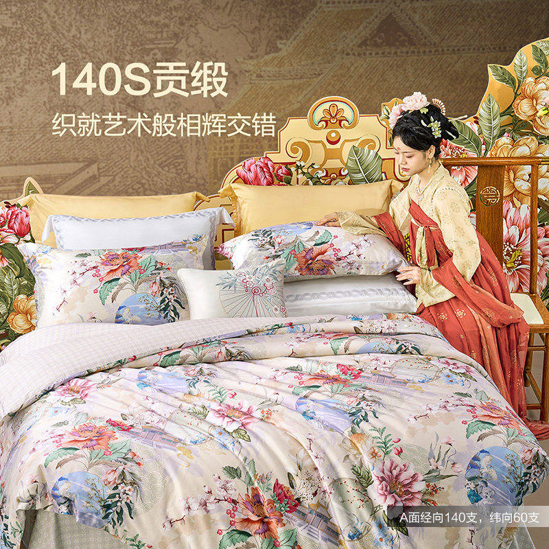 富安娜家纺140支双股皮马棉床上四件套纯棉全棉床单被套轻奢床品